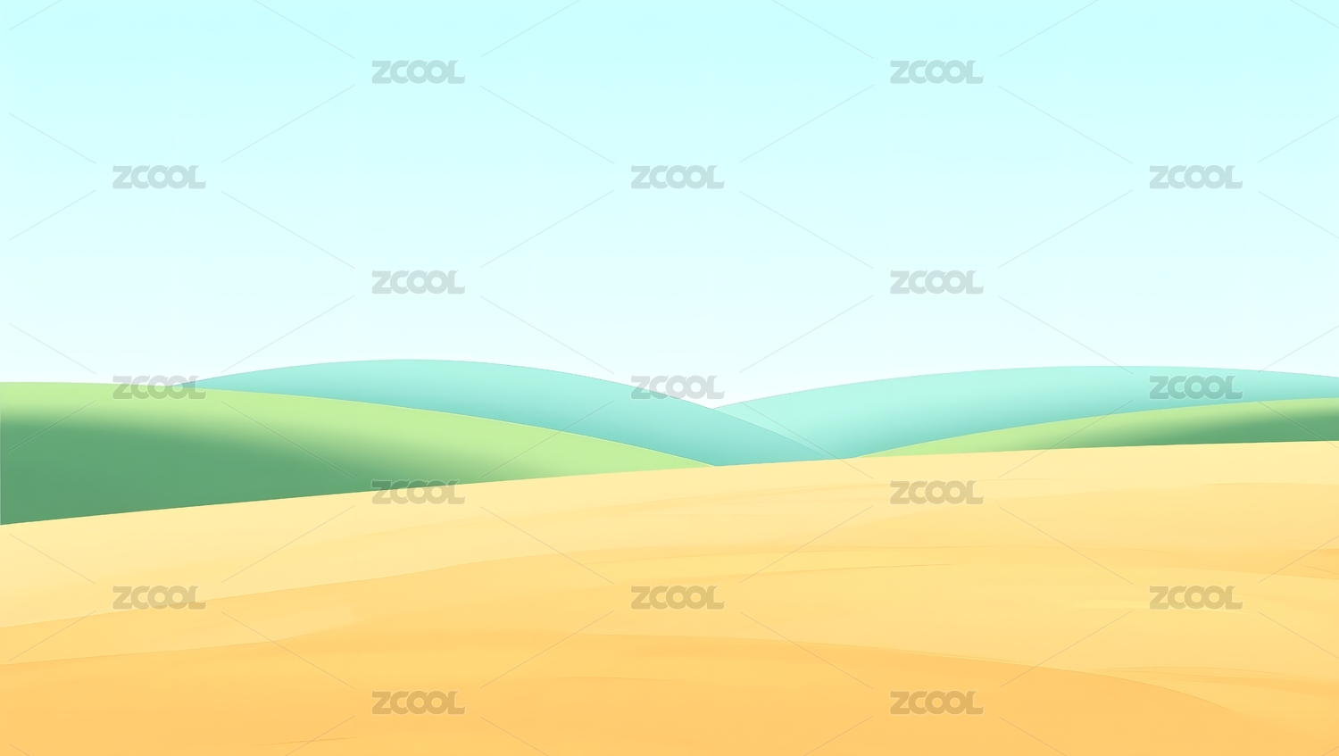 柔和的彩色丘陵组成的极简风格的田园风光