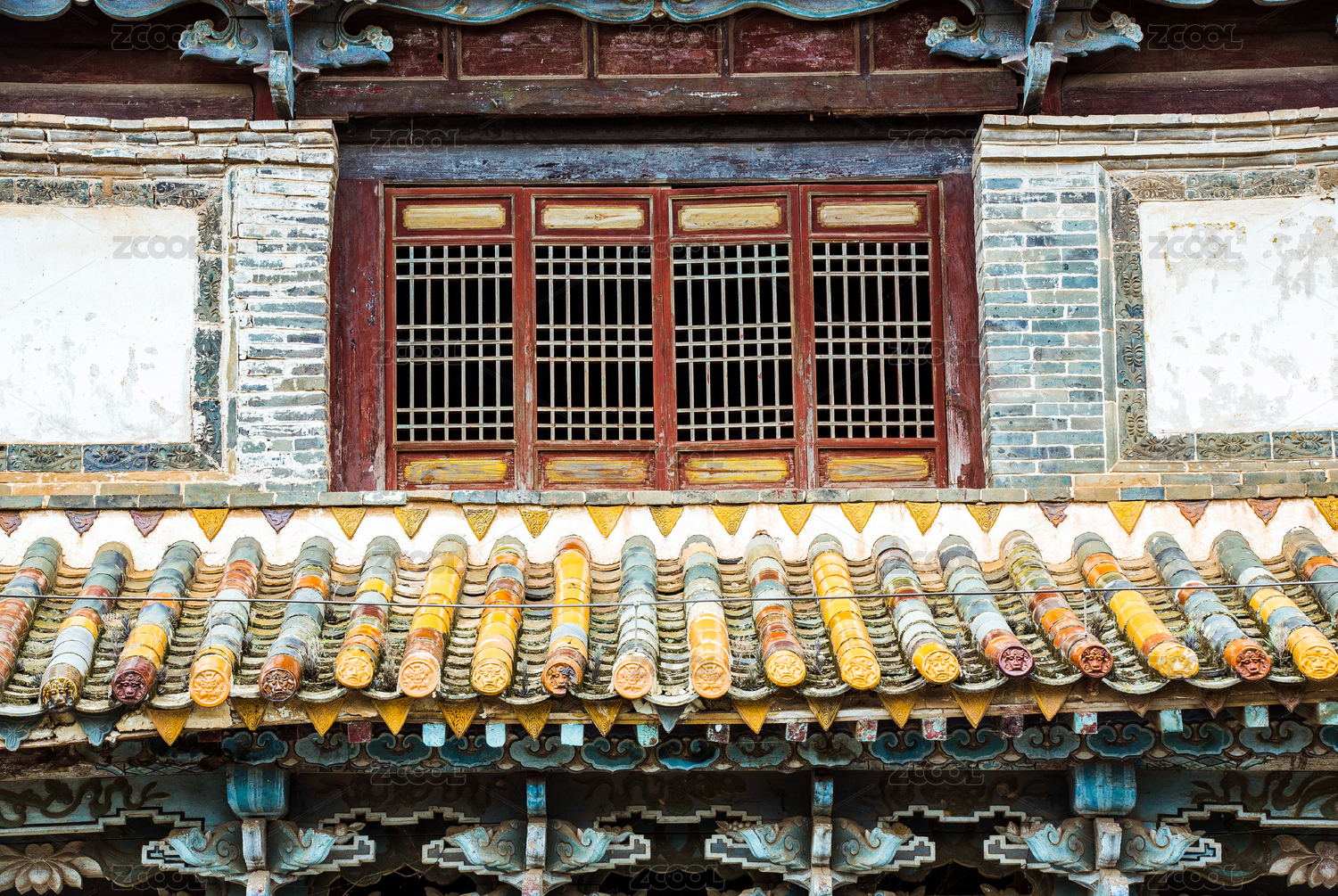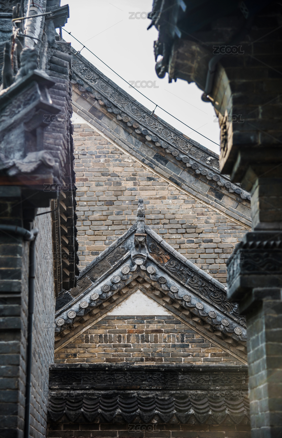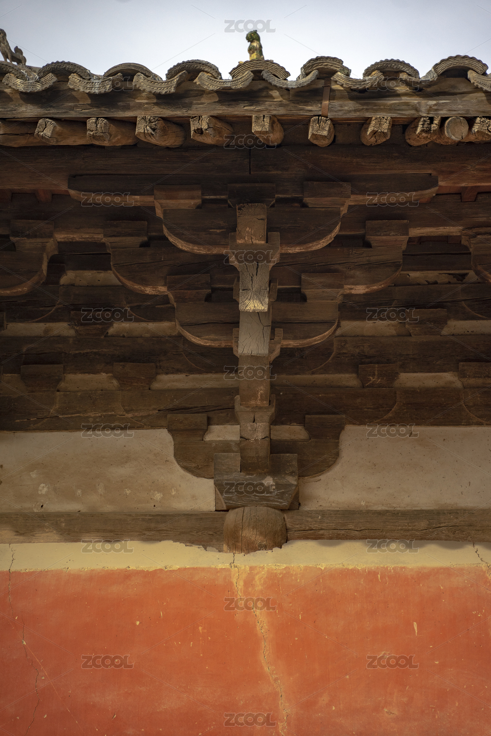 中国山西省武乡县民宅房梁龙兽屋脊装饰建筑
