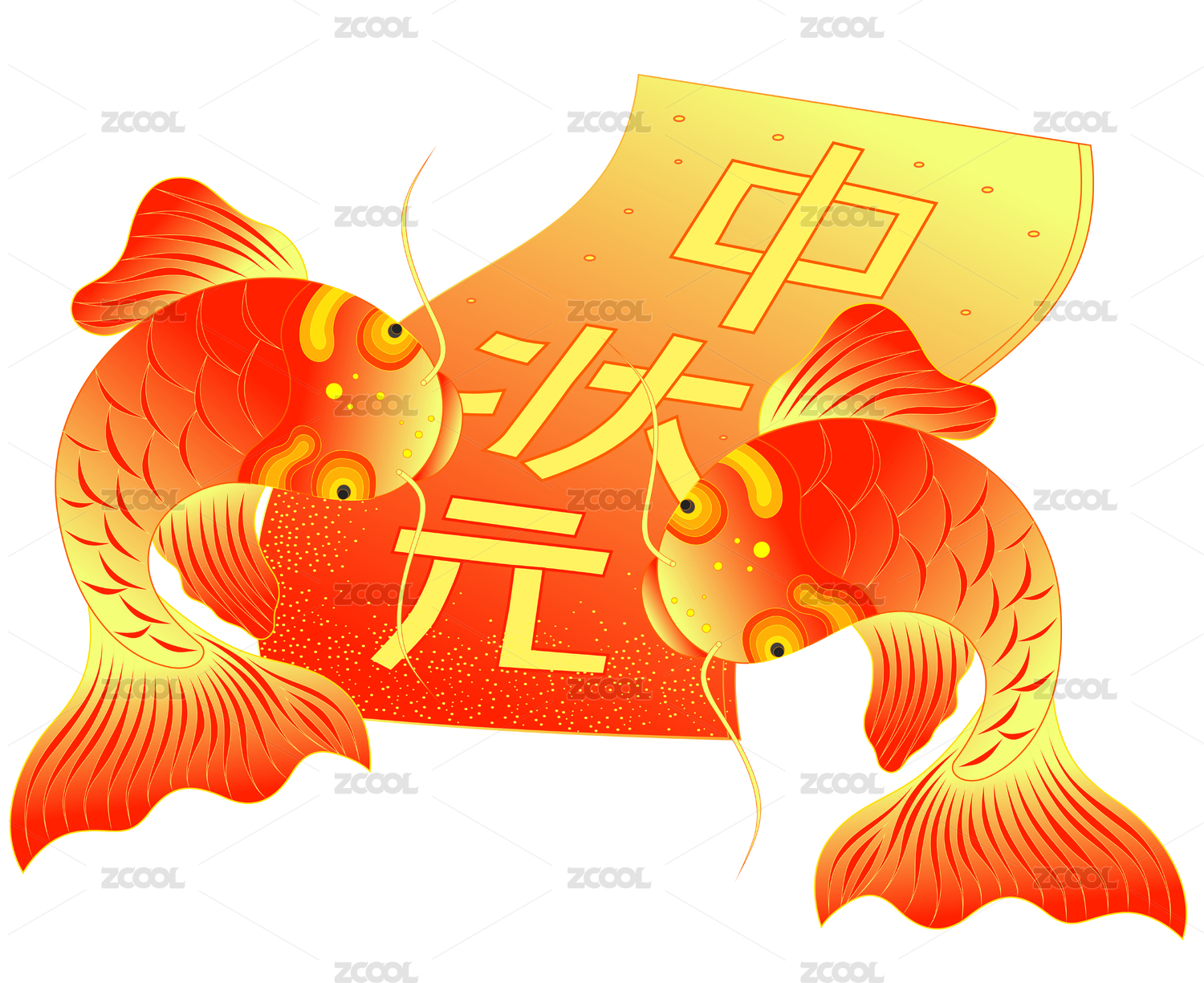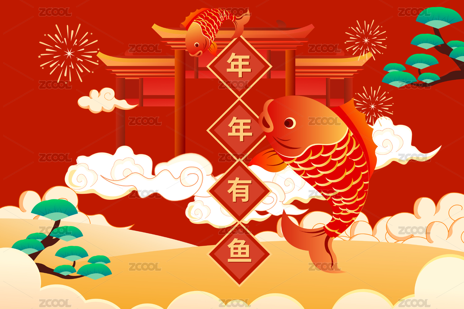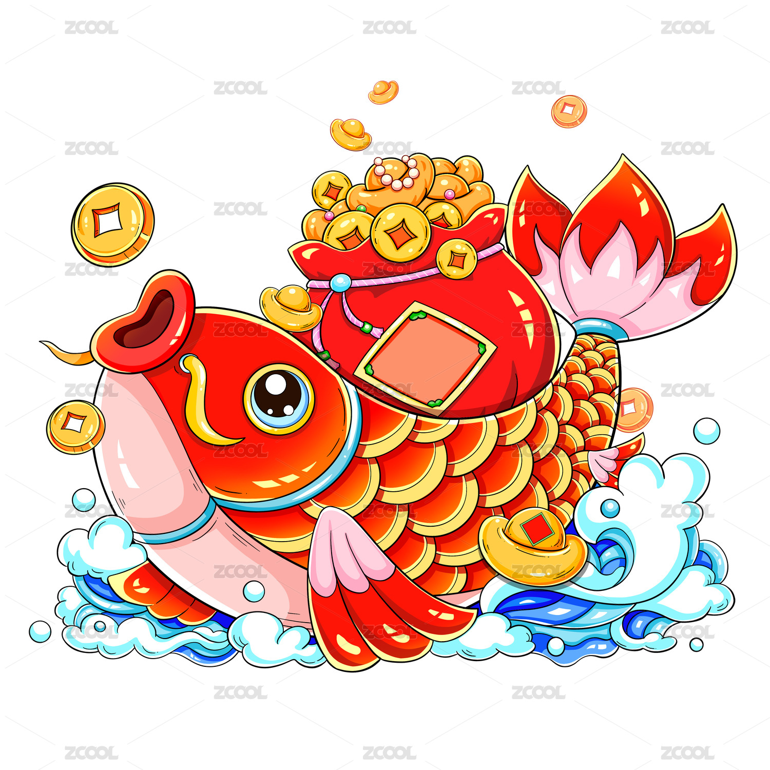 喜庆春节新年卡通锦鲤福袋无浪插画