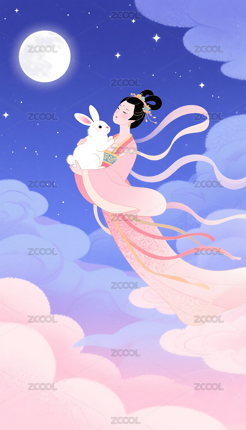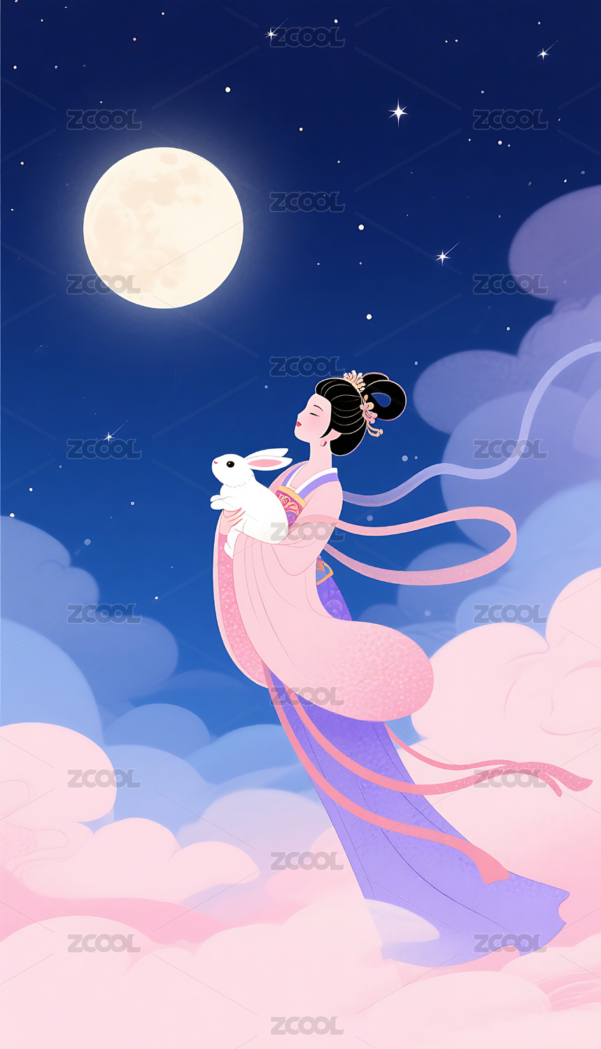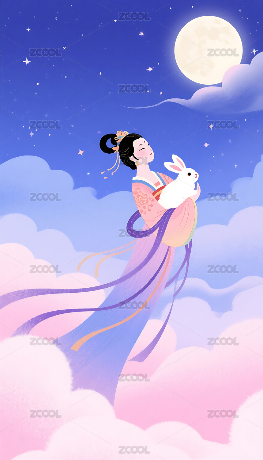 国风中国传统节日玉兔中秋节嫦娥奔月插画