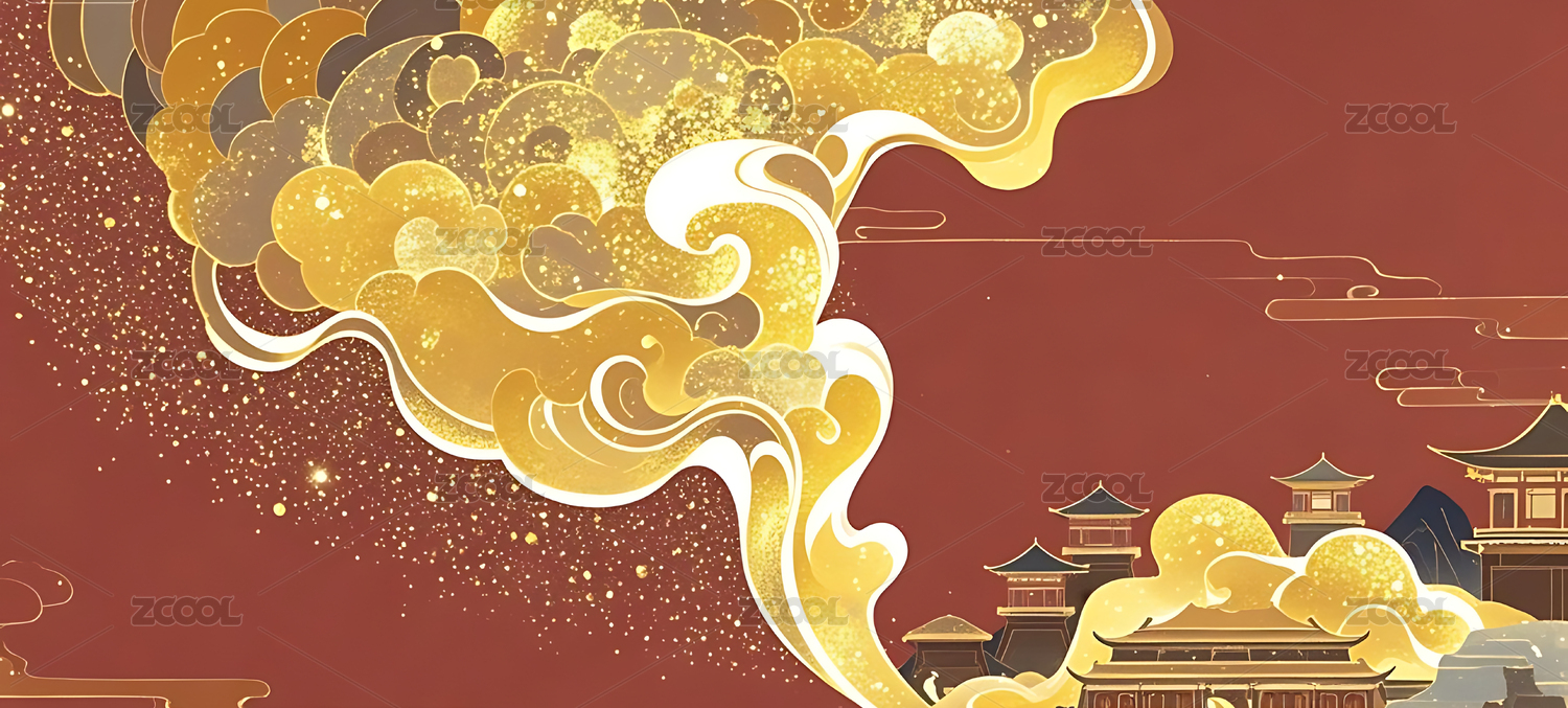 中式传统金箔质感古建筑背景