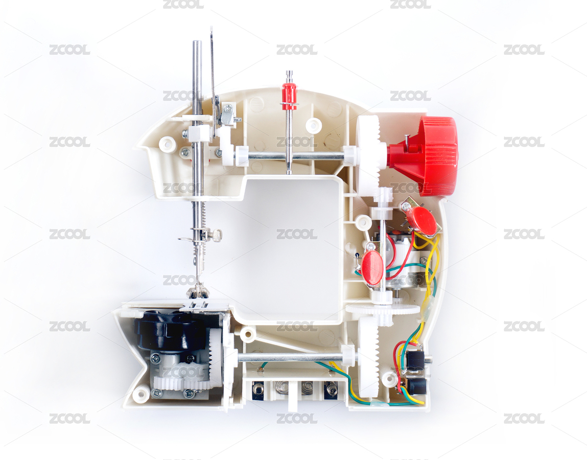 缝纫机,小型,内部结构,复杂,塑料,零件,维修,白底,线路,坏掉