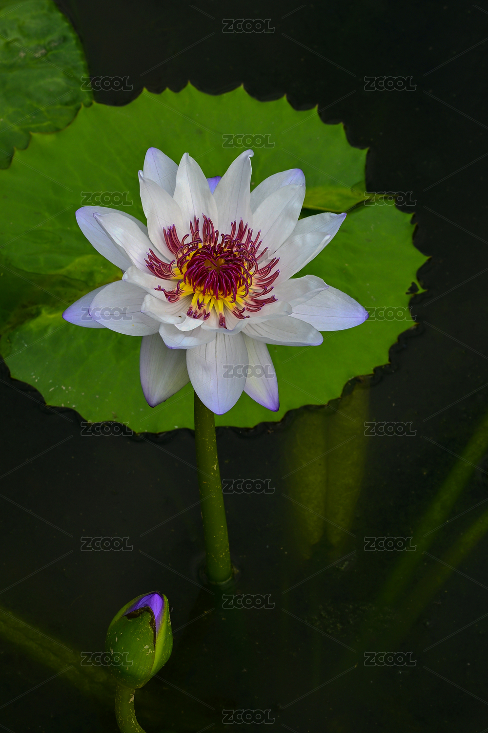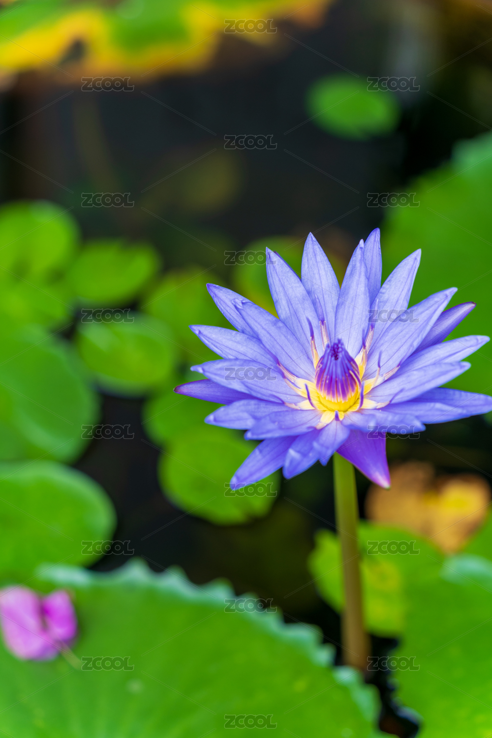 池塘中盛开的蓝紫色睡莲
