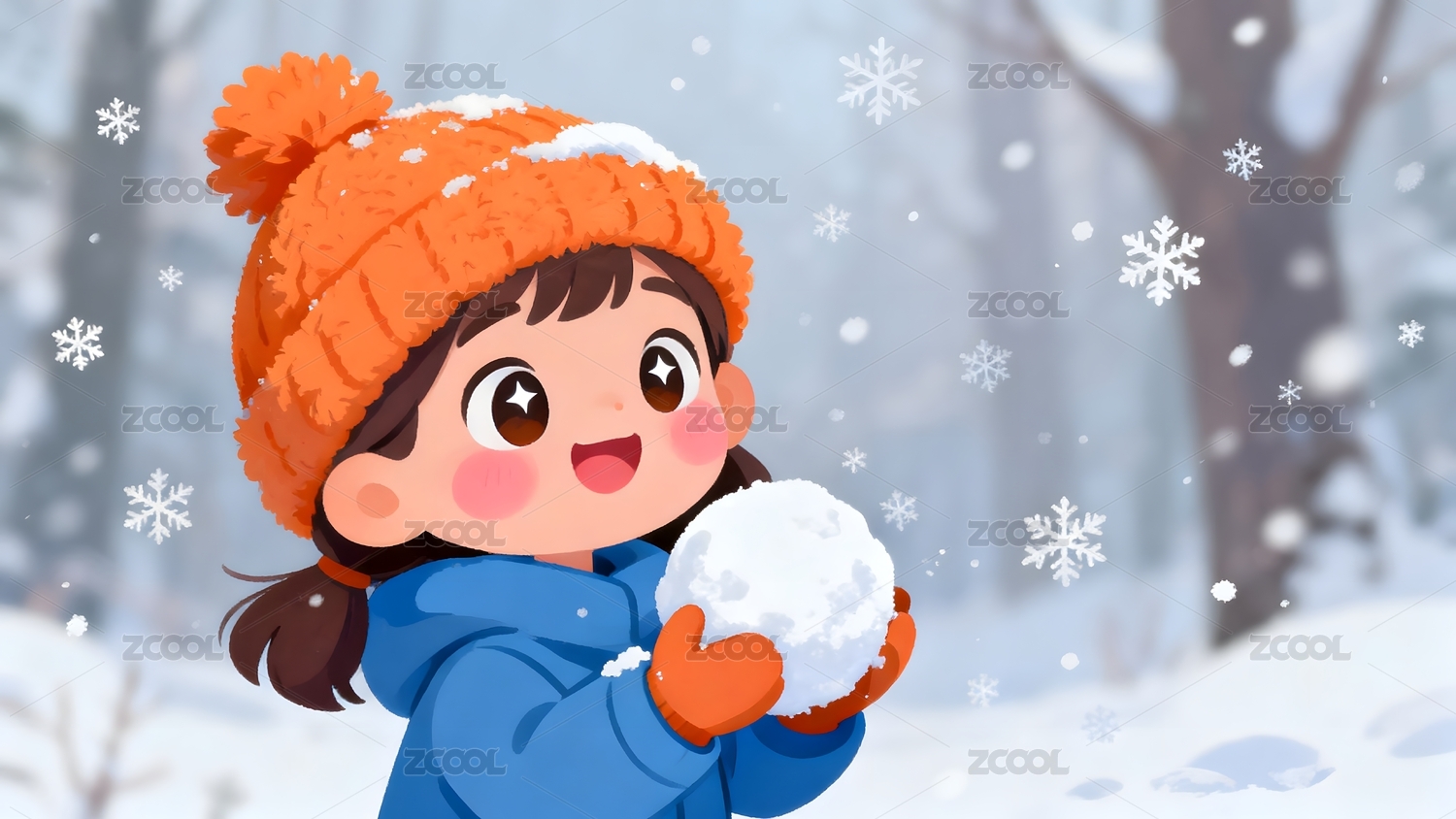 冬日,冬天,雪天,雪地,下雪,可爱,女孩,卡通,插画,可爱的女孩