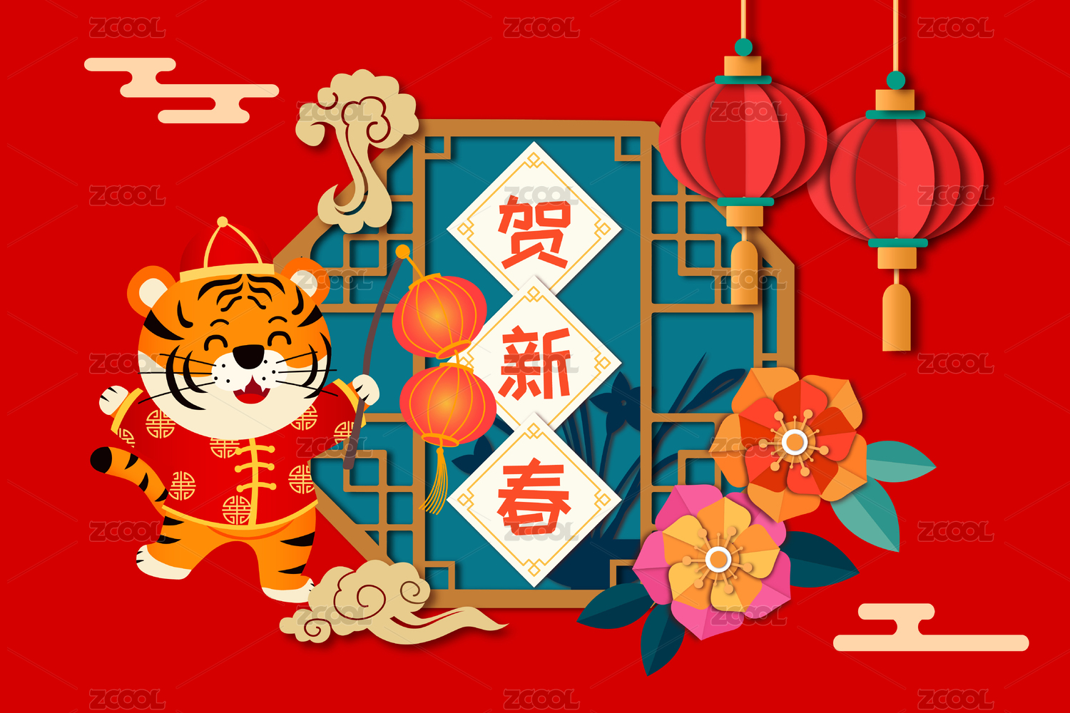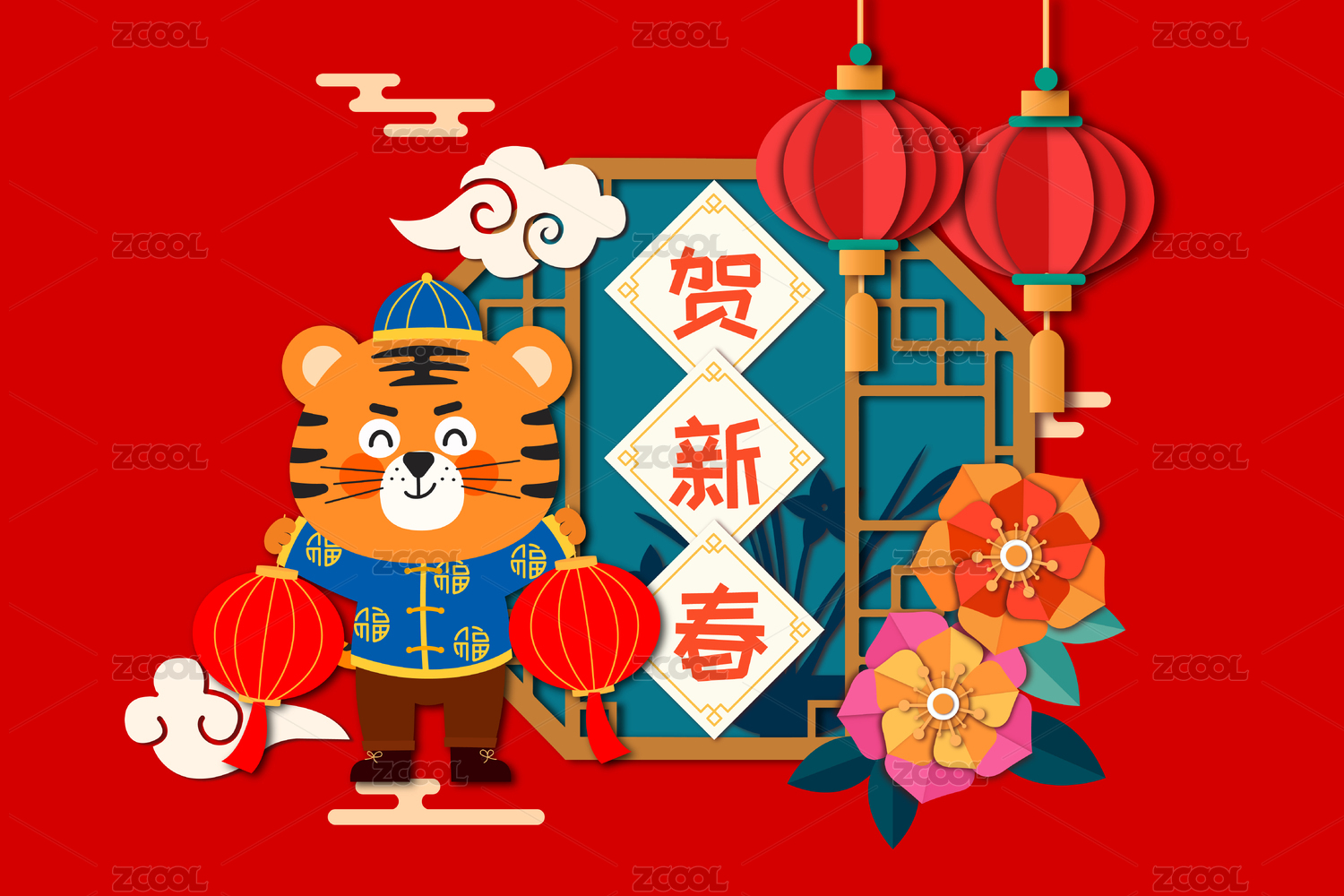 节日,庆祝,新年,虎,老虎,虎年,春节,生肖,矢量,插画