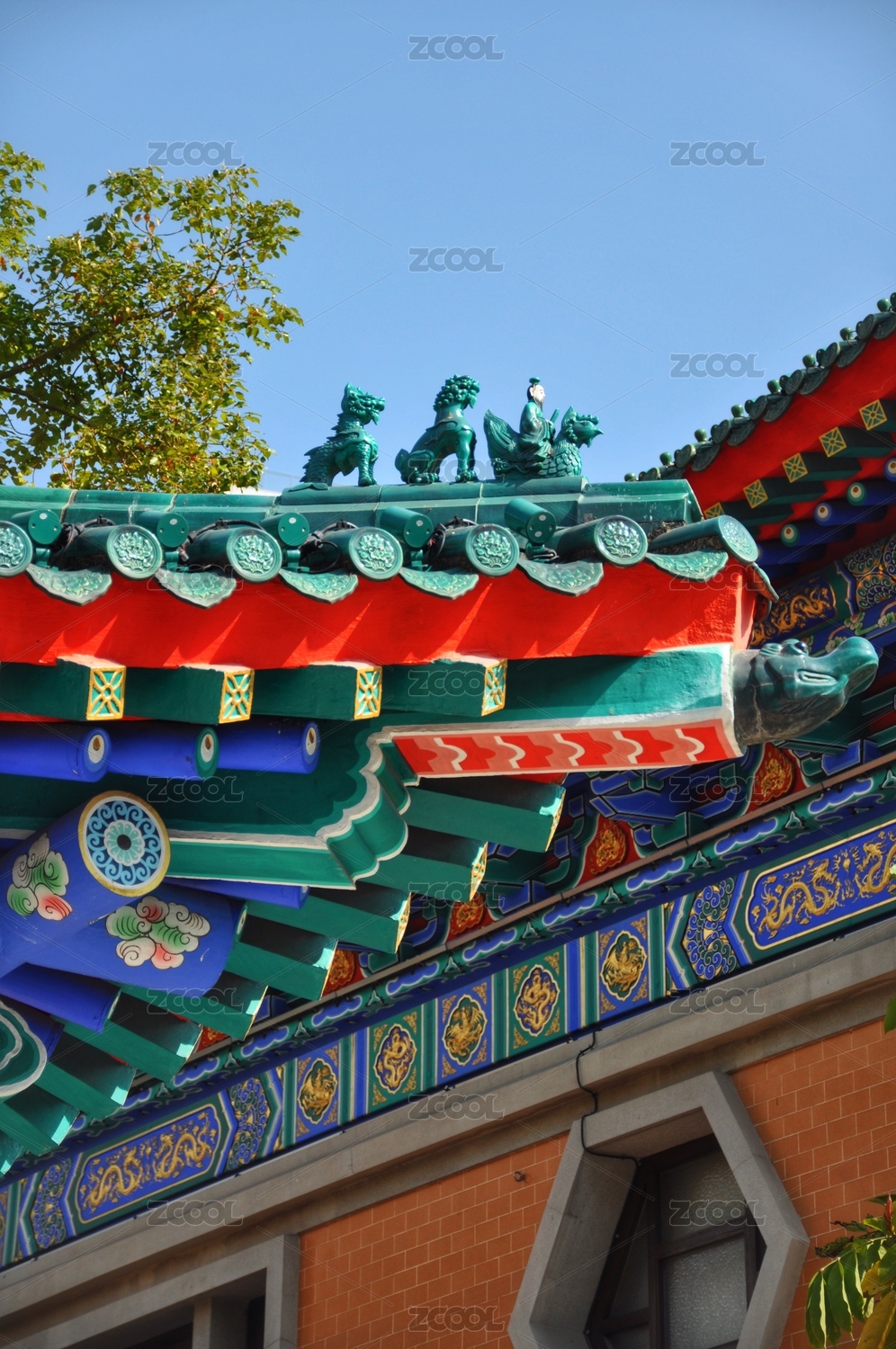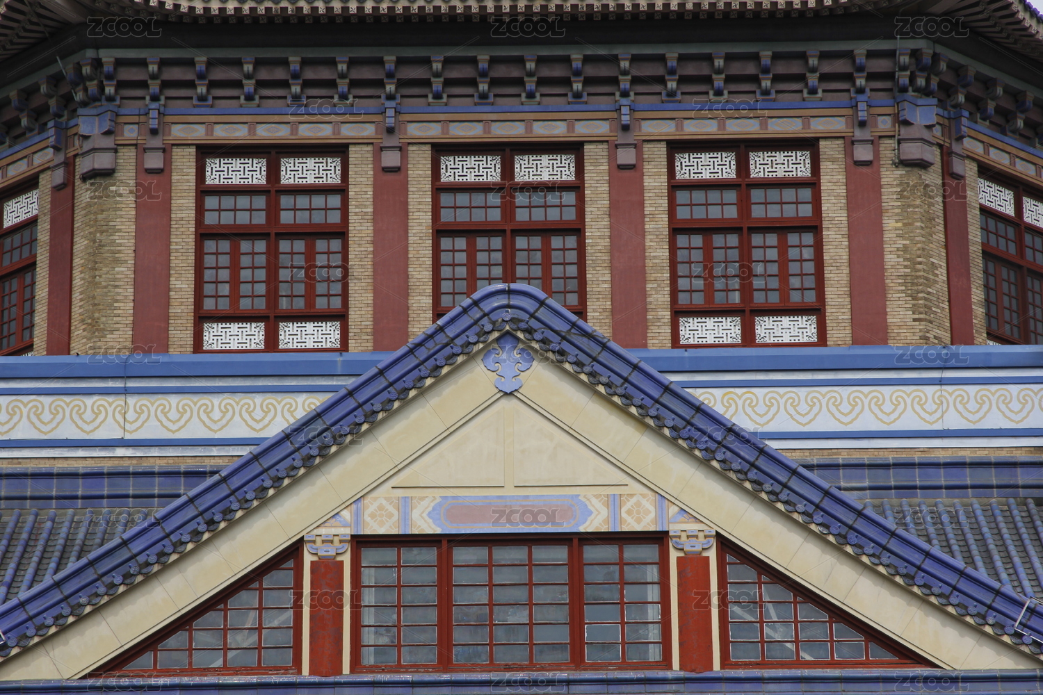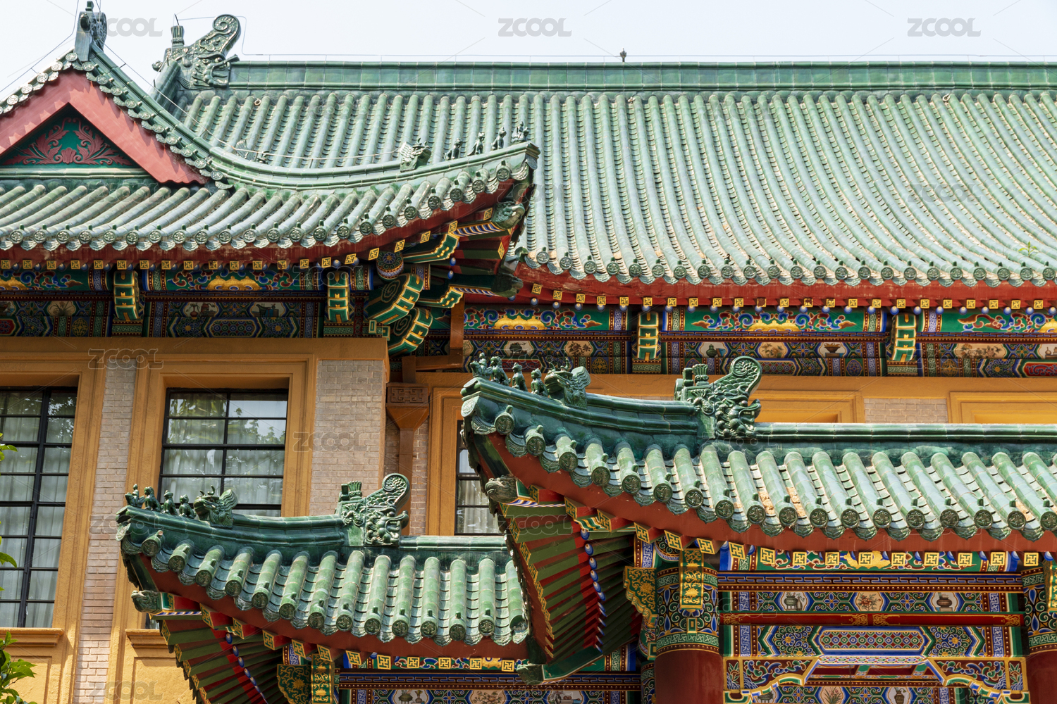 中国广东广州中山纪念堂的中式复古建筑一角特写