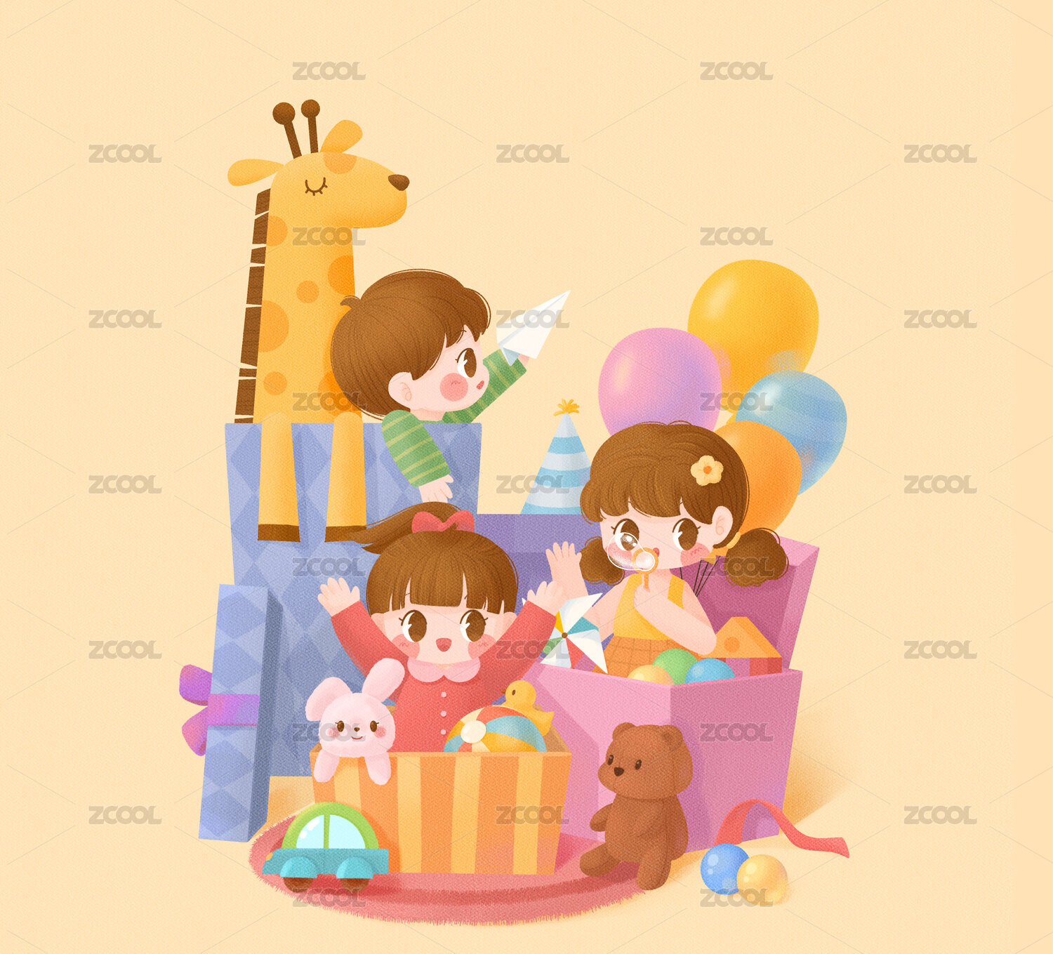 儿童节六一小朋友小孩子礼物插画玩耍梦想