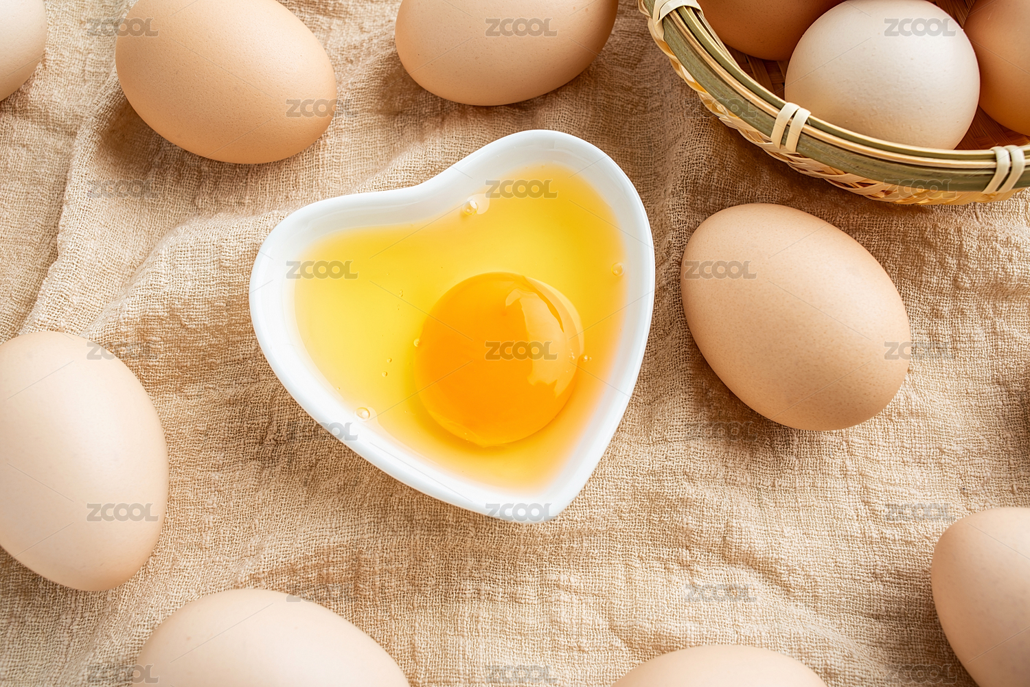 俯视白背景中的一筐鸡蛋素材