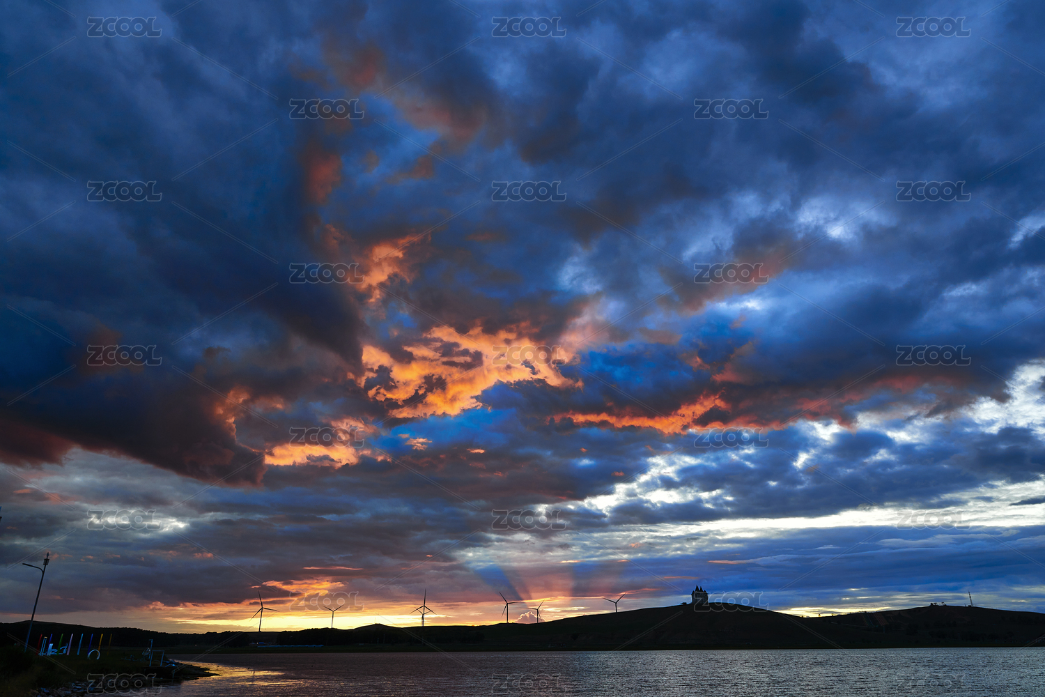 中国云南昆明滇池日落阳光光束云景