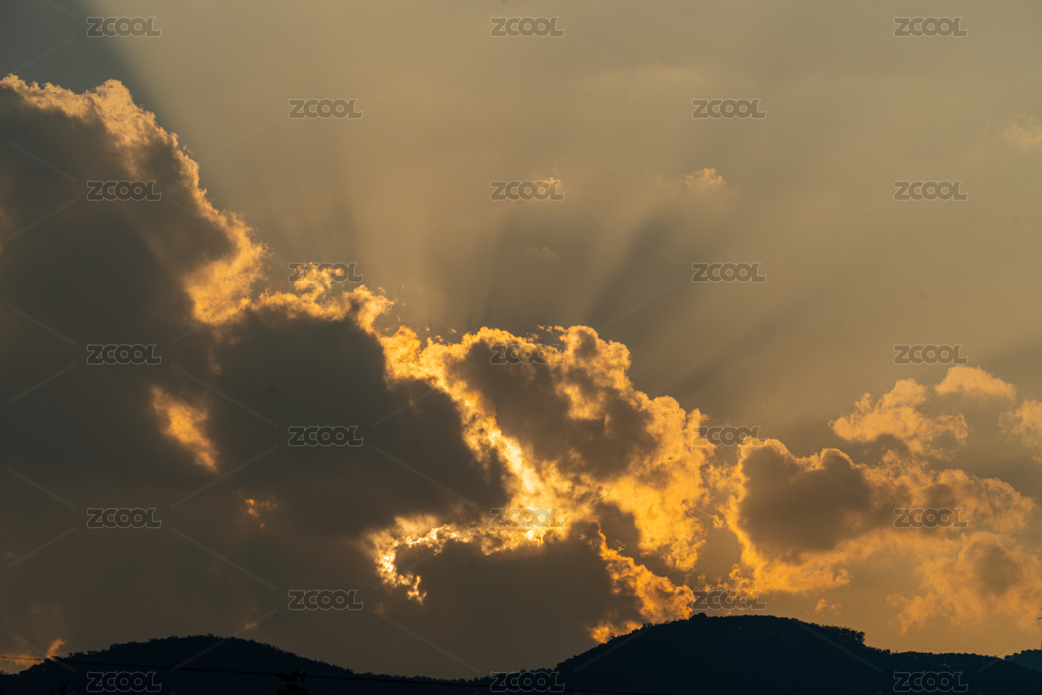日落时大山里的丁达尔光线