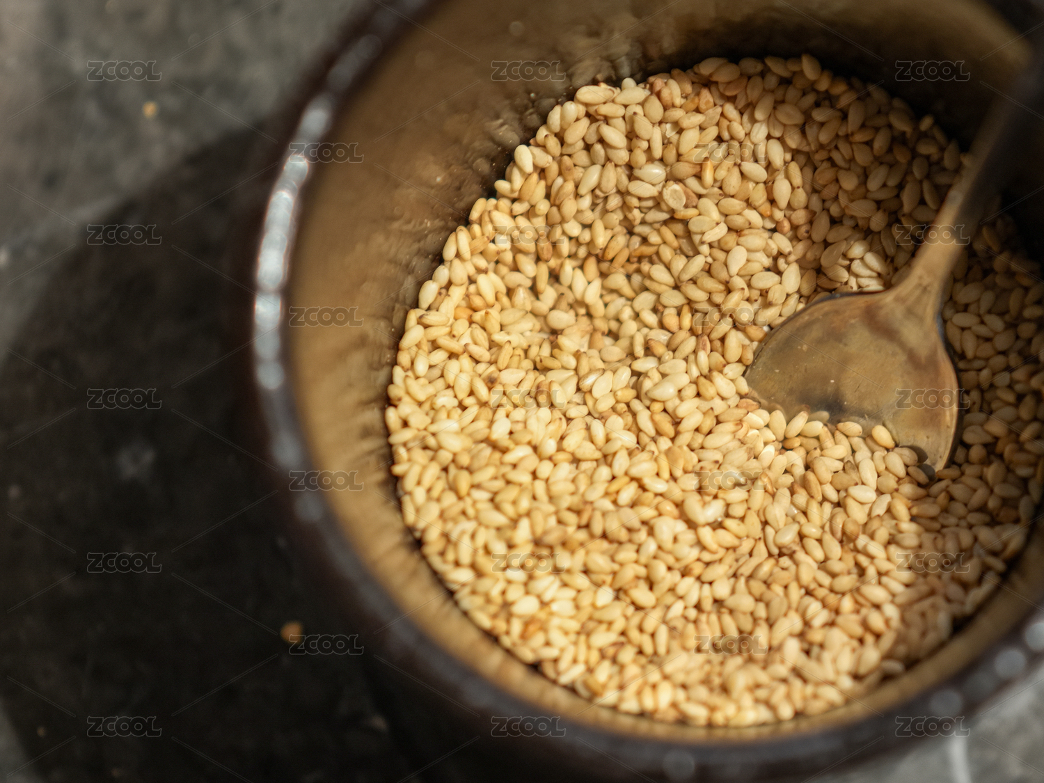 勺子舀起芝麻特写