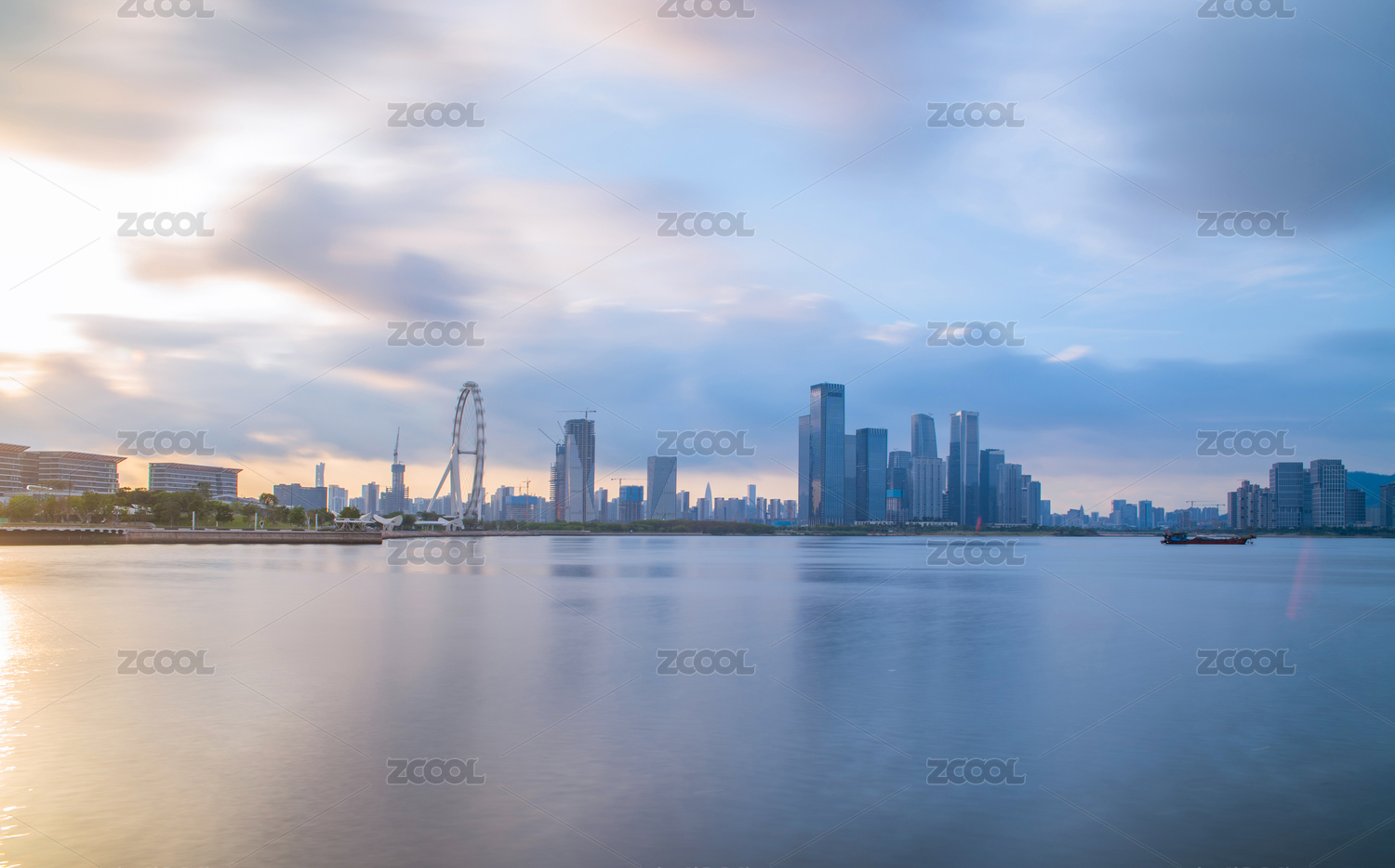 深圳前海CBD和滨海文化公园摩天轮天际线