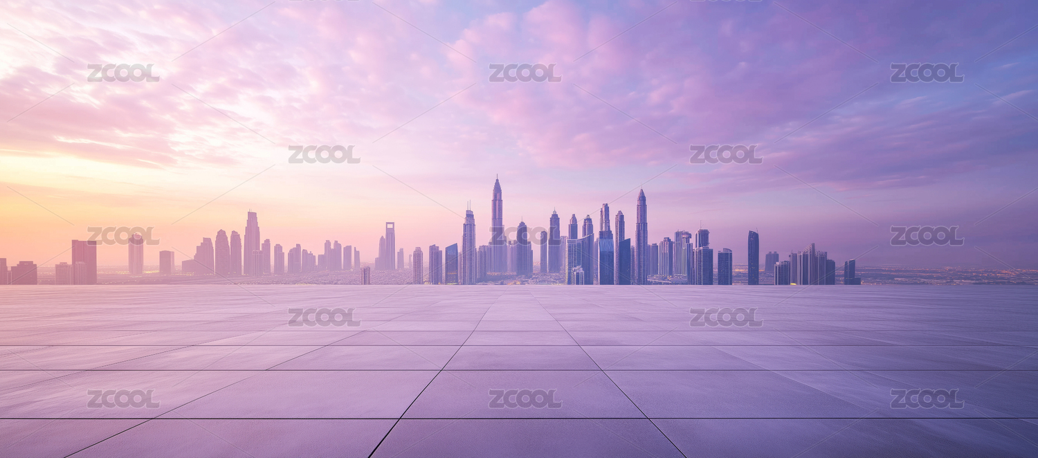 城市天际线与空旷广场地面背景