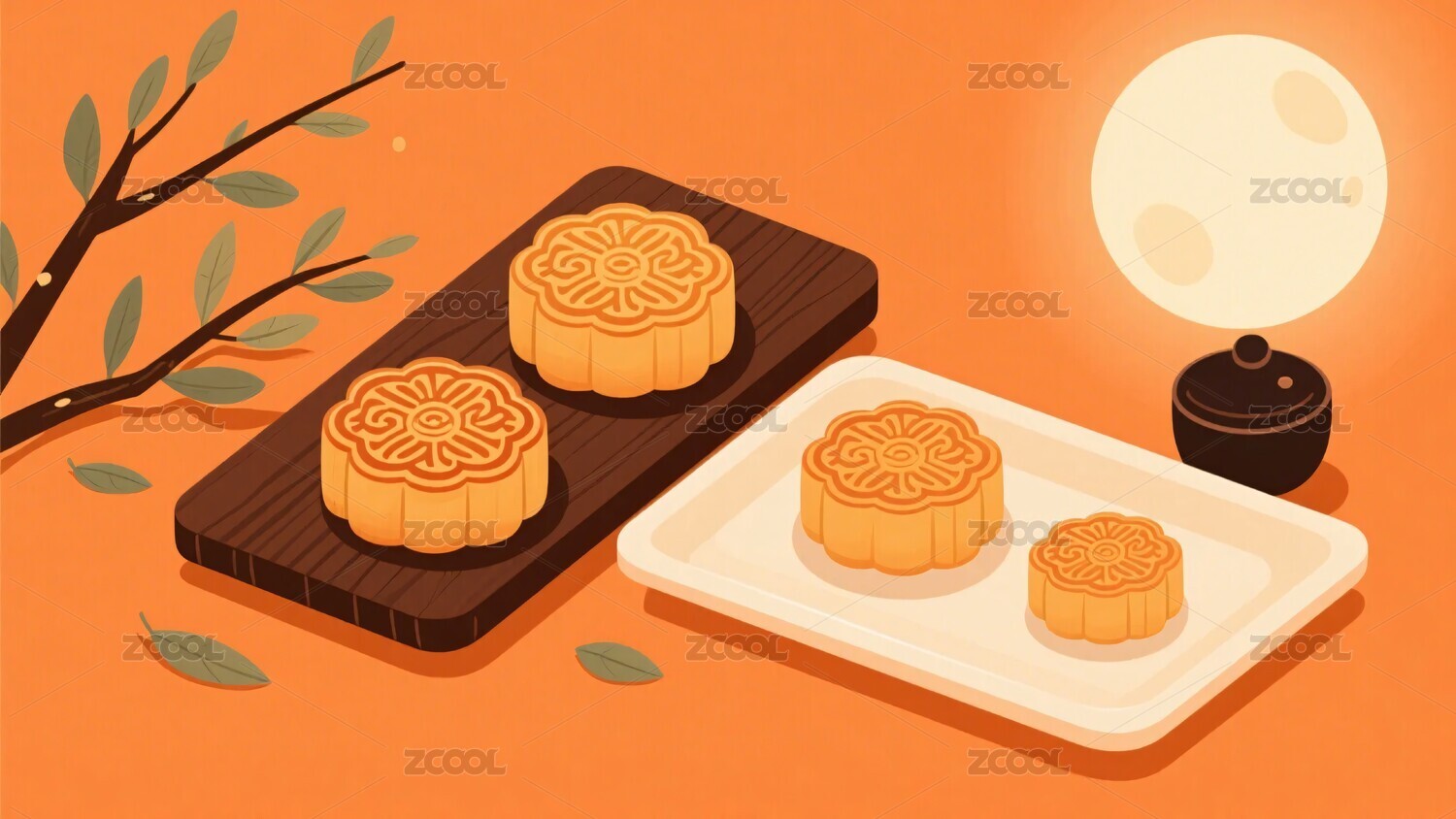 插画中秋月饼场景