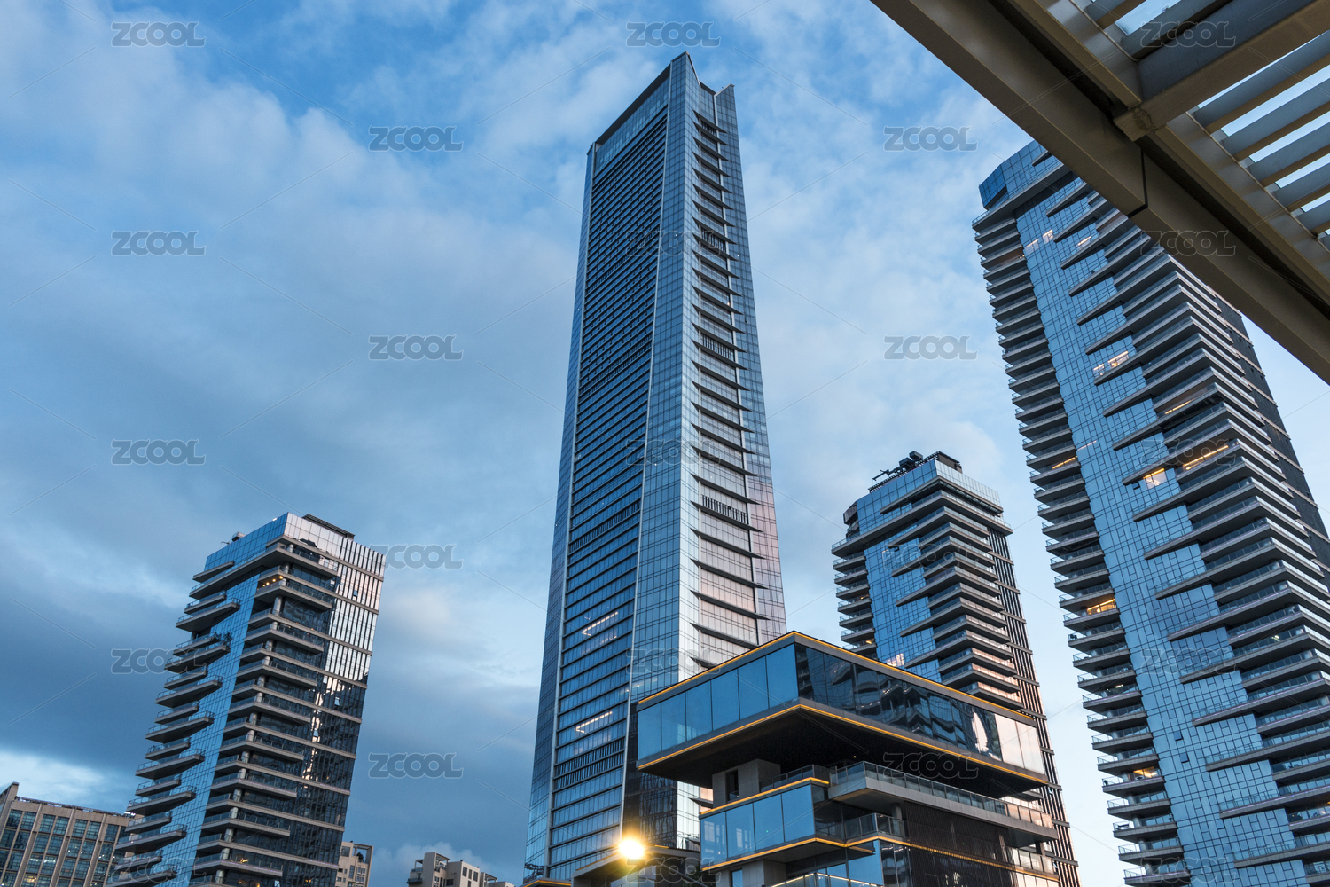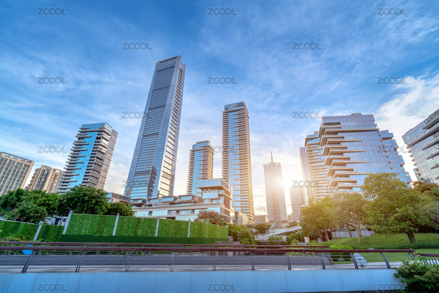 仰视深圳现代建筑办公楼和城市广场街道景观