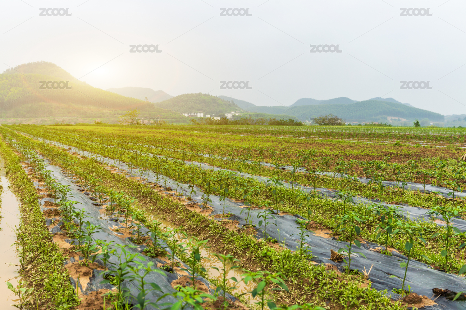 农村田里的透明薄膜菜棚。