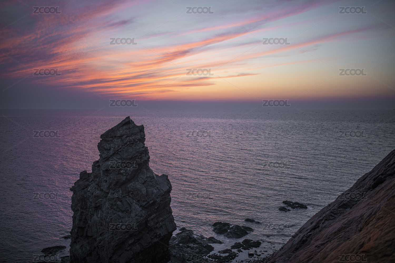 辽宁,大连,瓦房店,排石村,海,渤海,岩石,天空,晚霞,傍晚