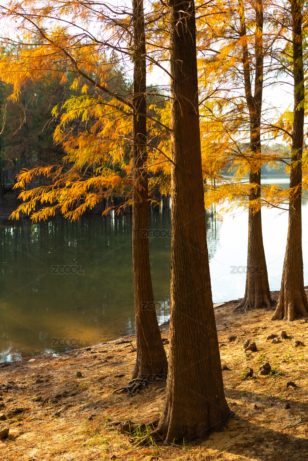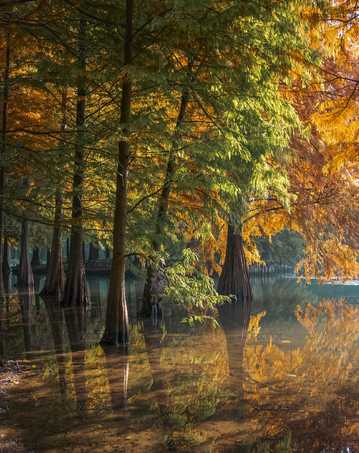 落羽杉,杉树,树,秋天,湖,倒影,秋色,植物,竖构图,光影