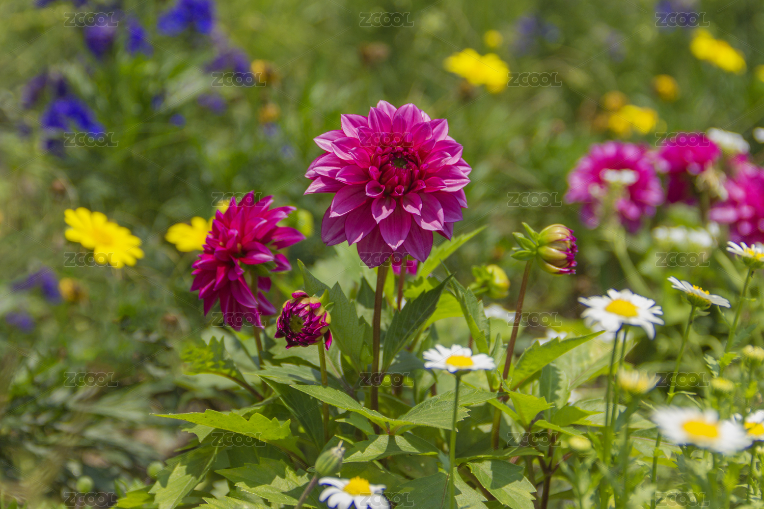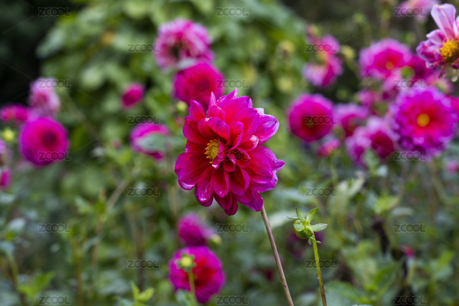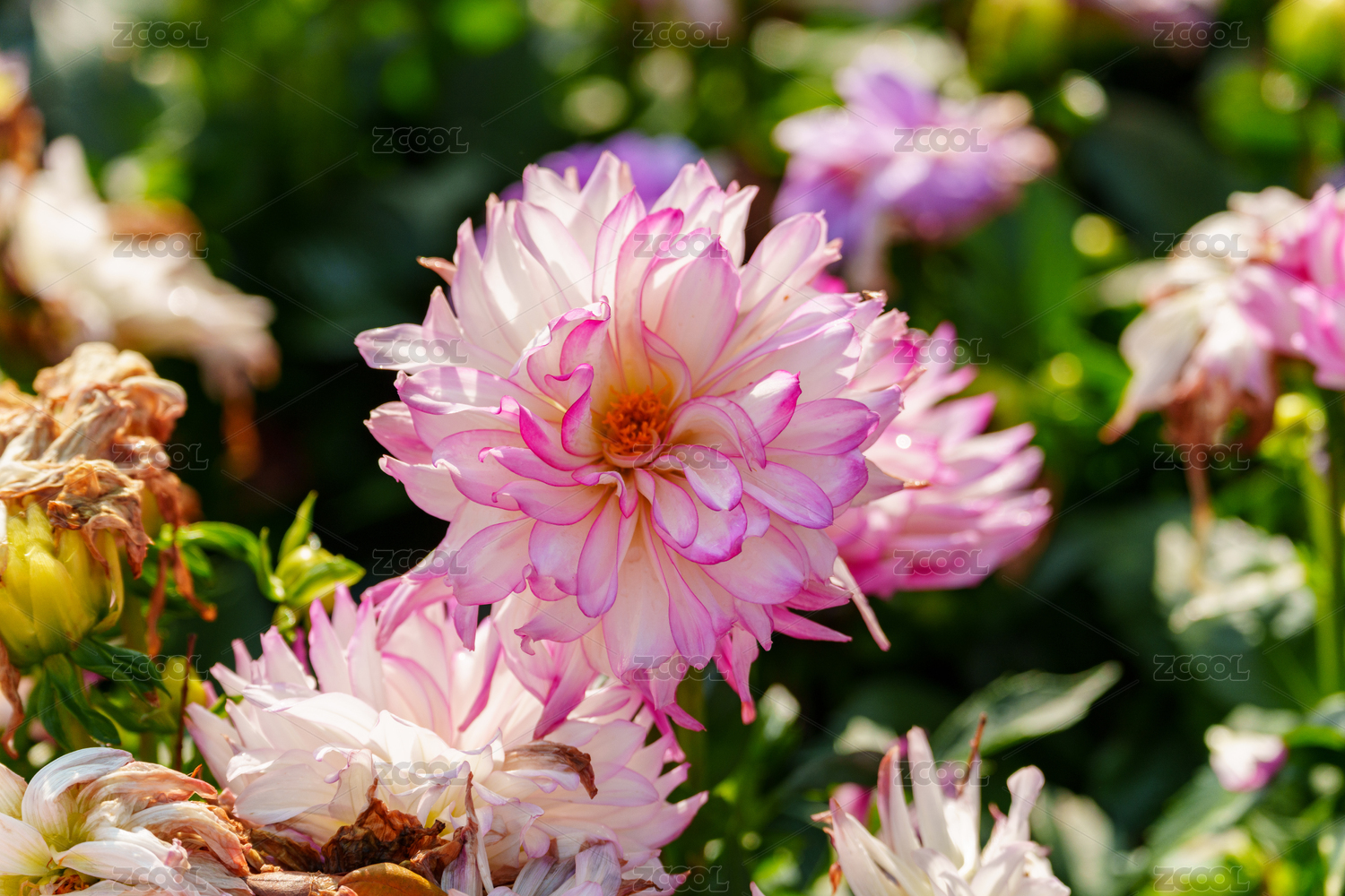 大丽花,大丽菊,天竺牡丹,花丛,一朵,粉色,晴天,白昼,盛开,秋季