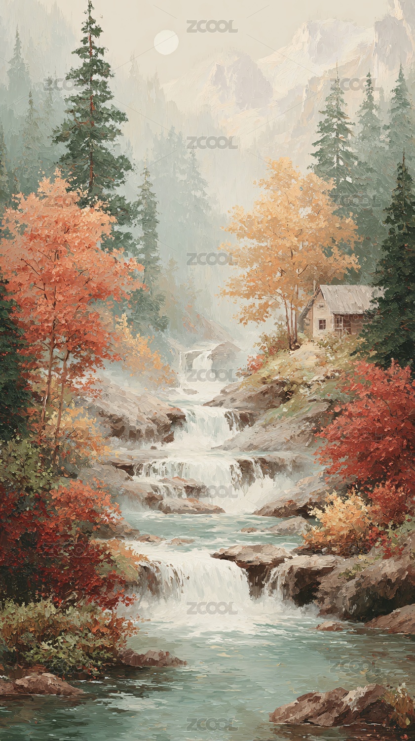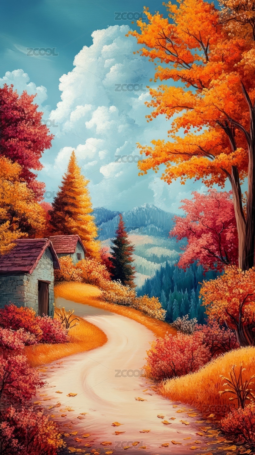 草地,朝霞,画作,黄叶,景色,美丽,鸟群,宁静,农田,秋季