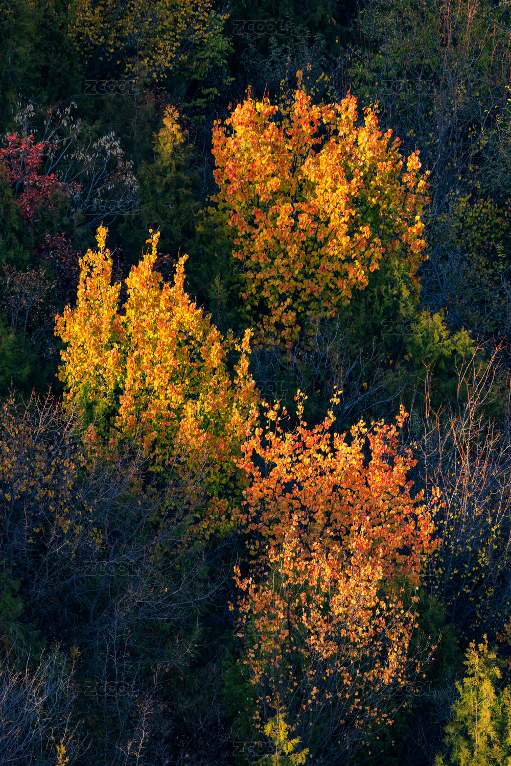 中国四川甘孜新龙雅砻江大峡谷的彩林秋色
