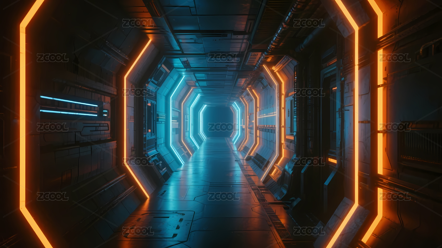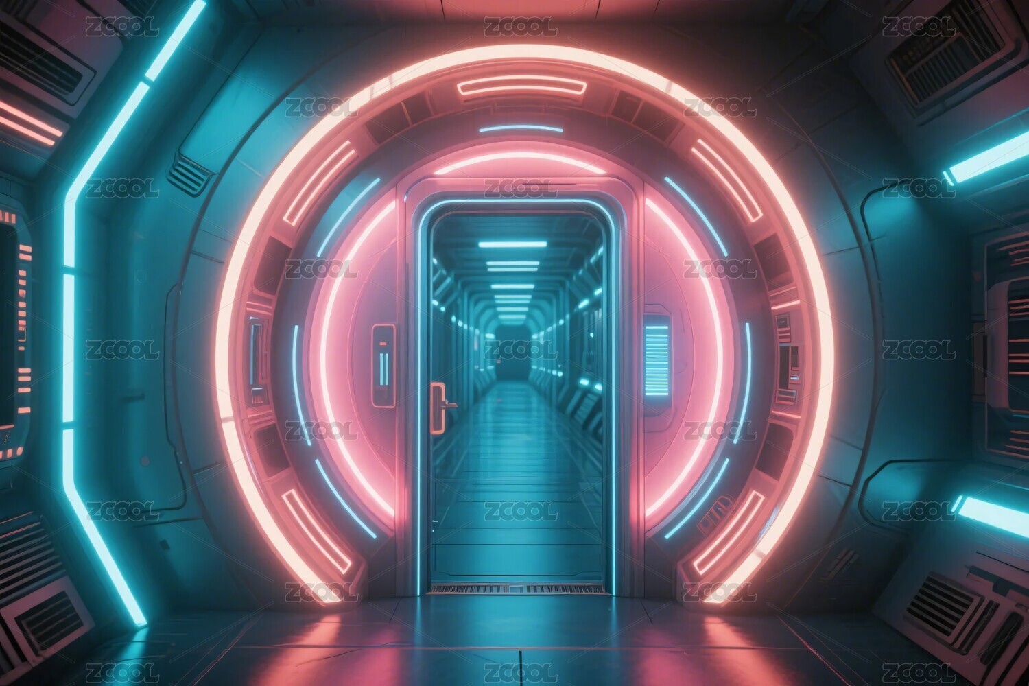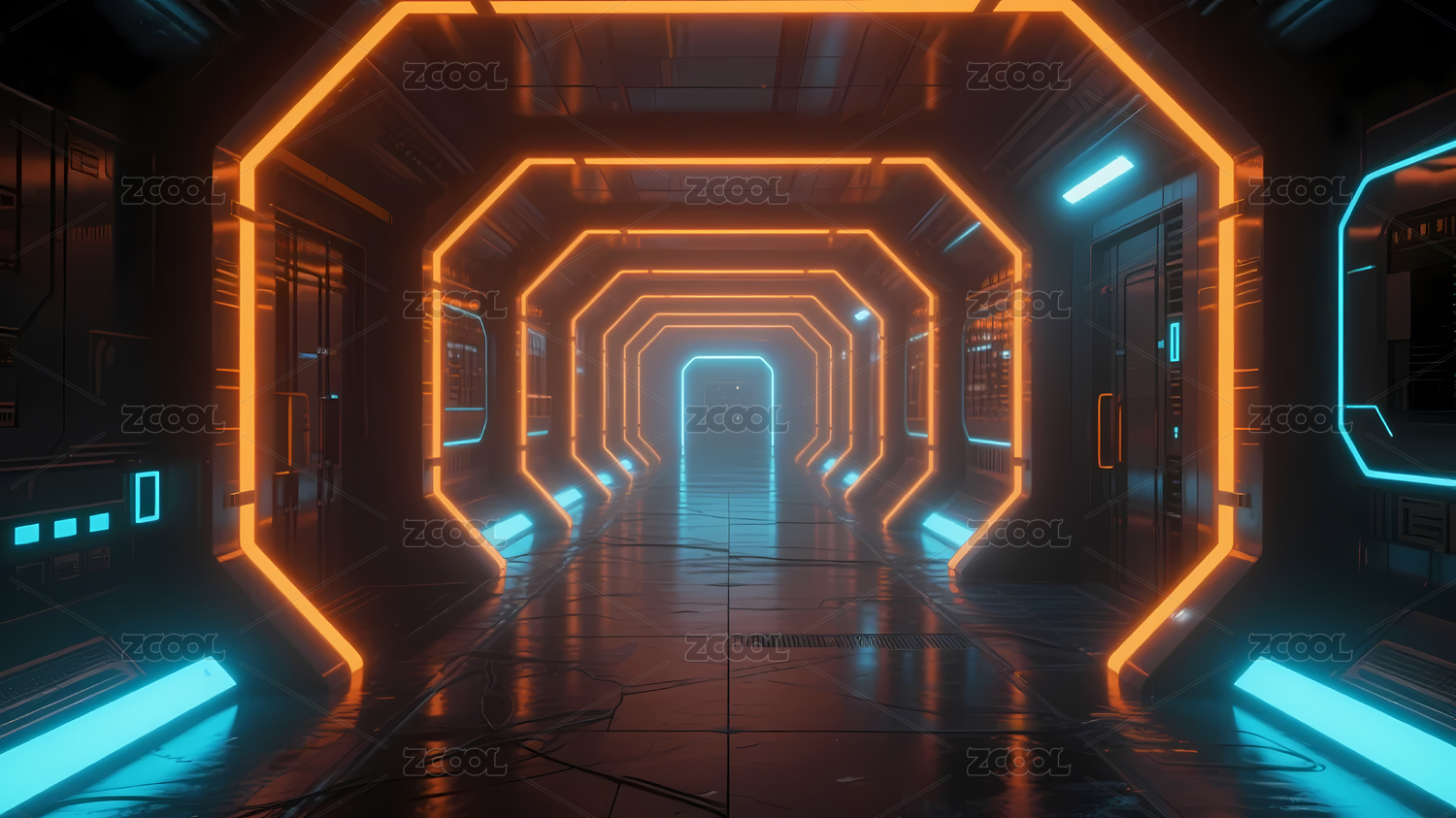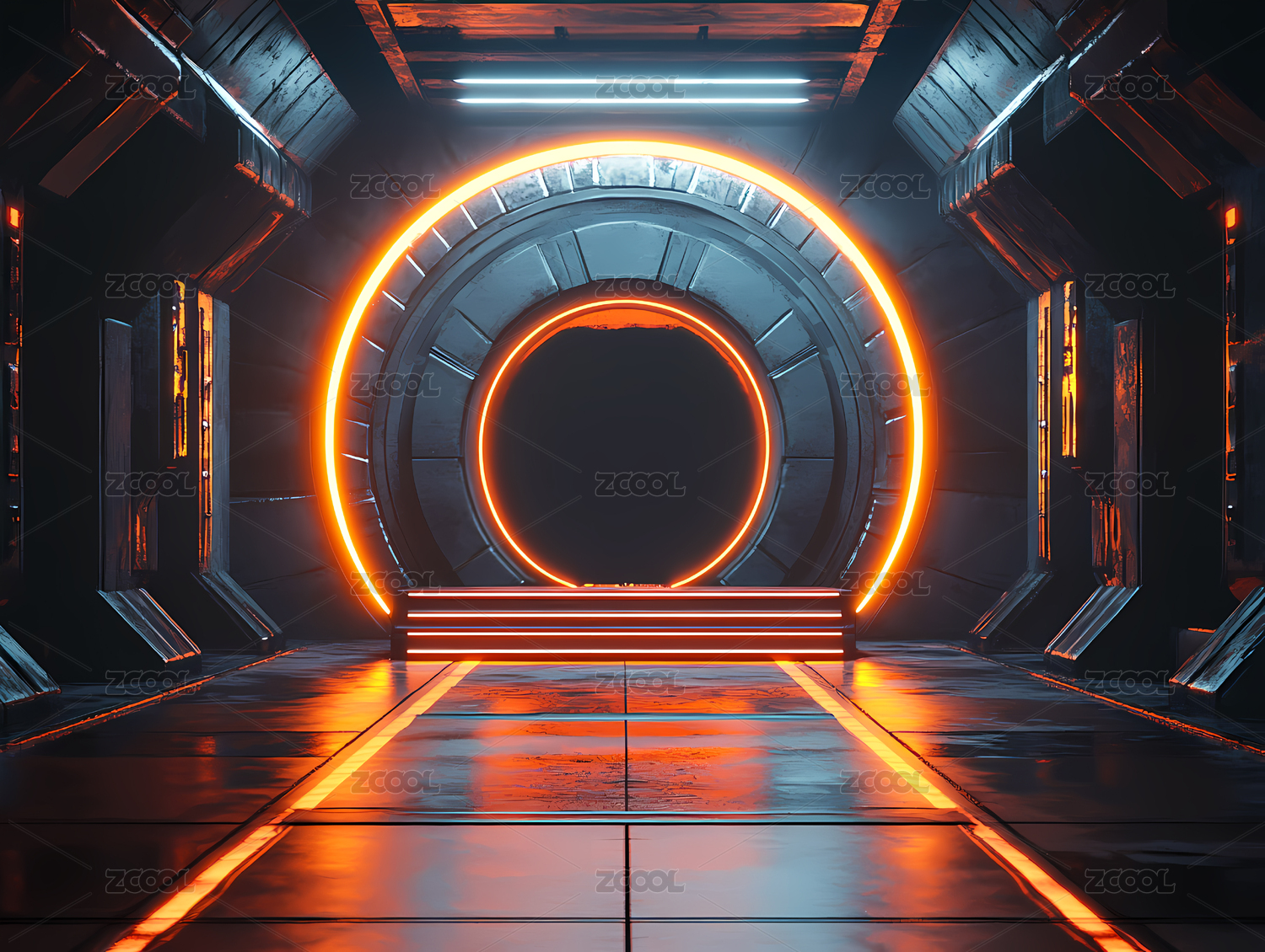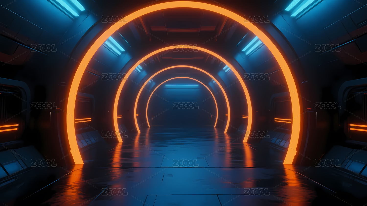 3D霓虹光圈未来科技空间感商务背景3D霓