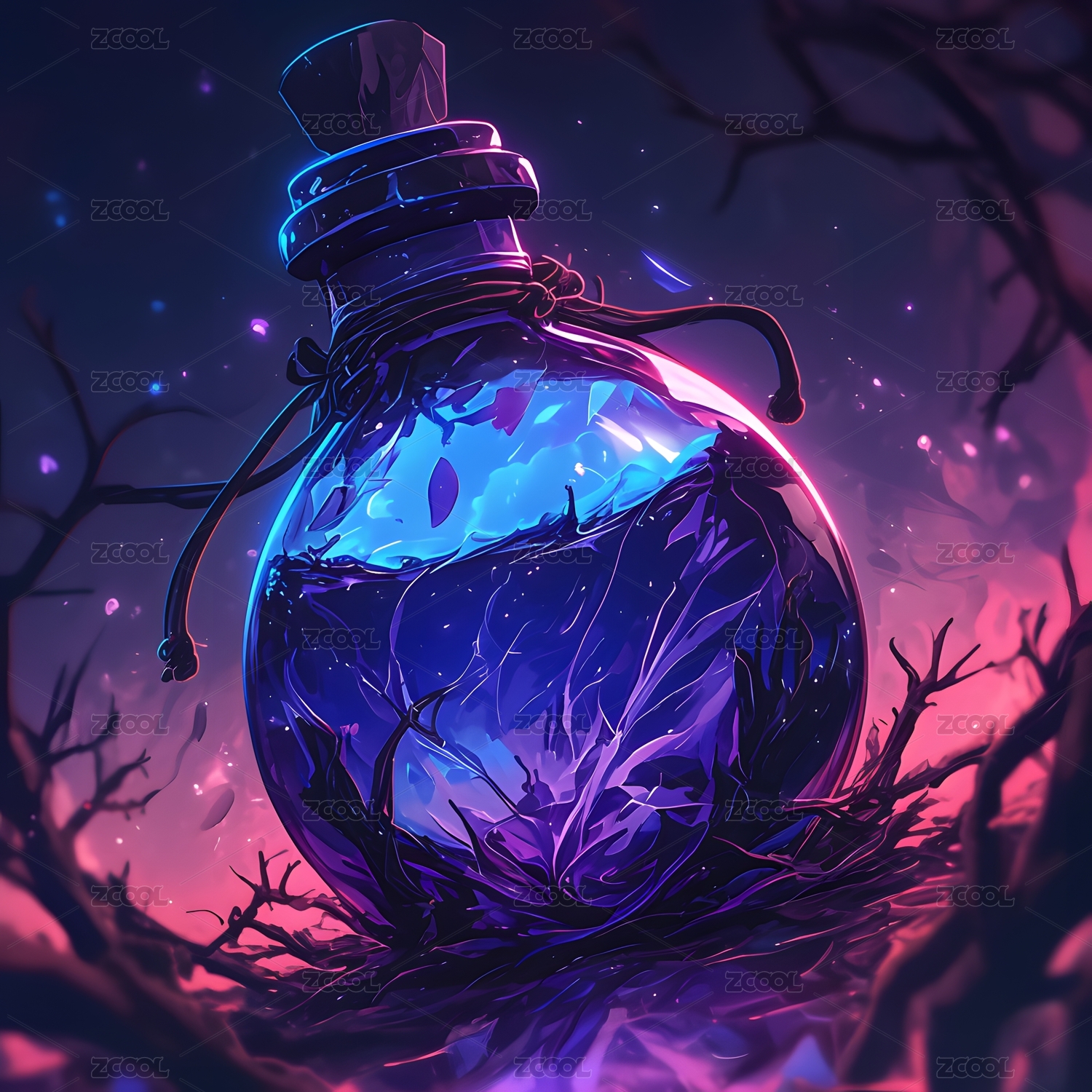 黑底原画游戏装备魔法药水宝瓶3D立体插画