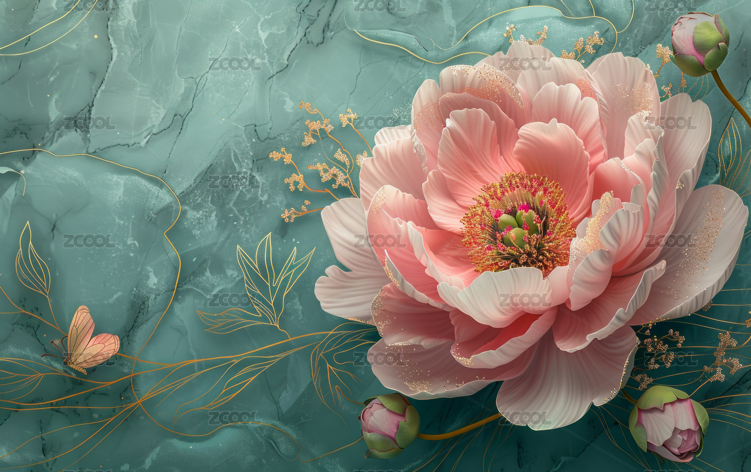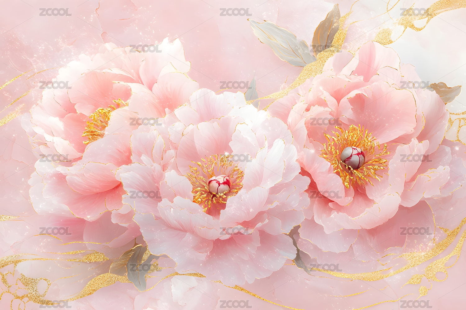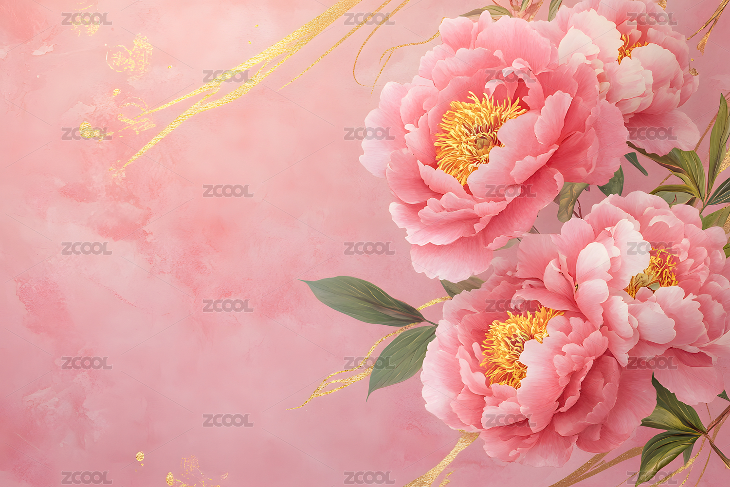 中国风浅红与金色渐变牡丹花图案壁纸背景