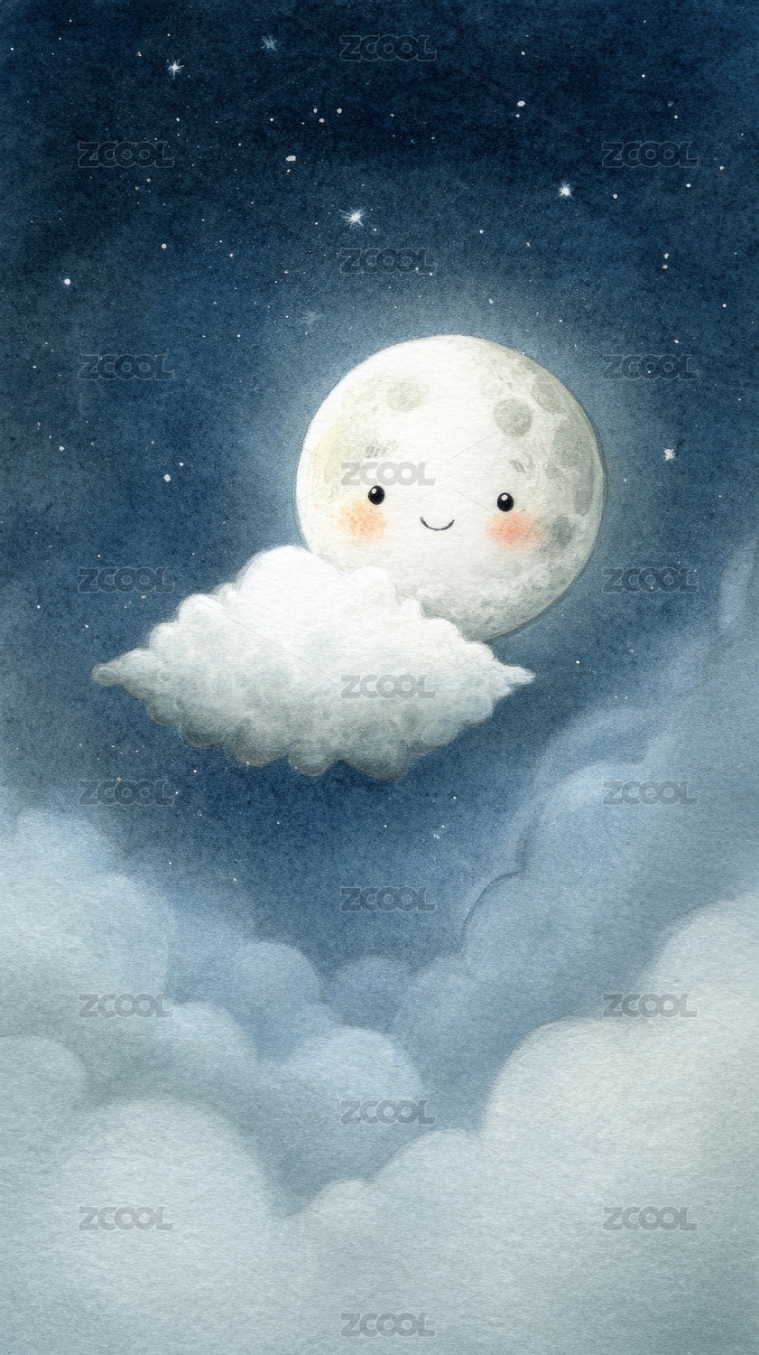 卡通月亮与云朵