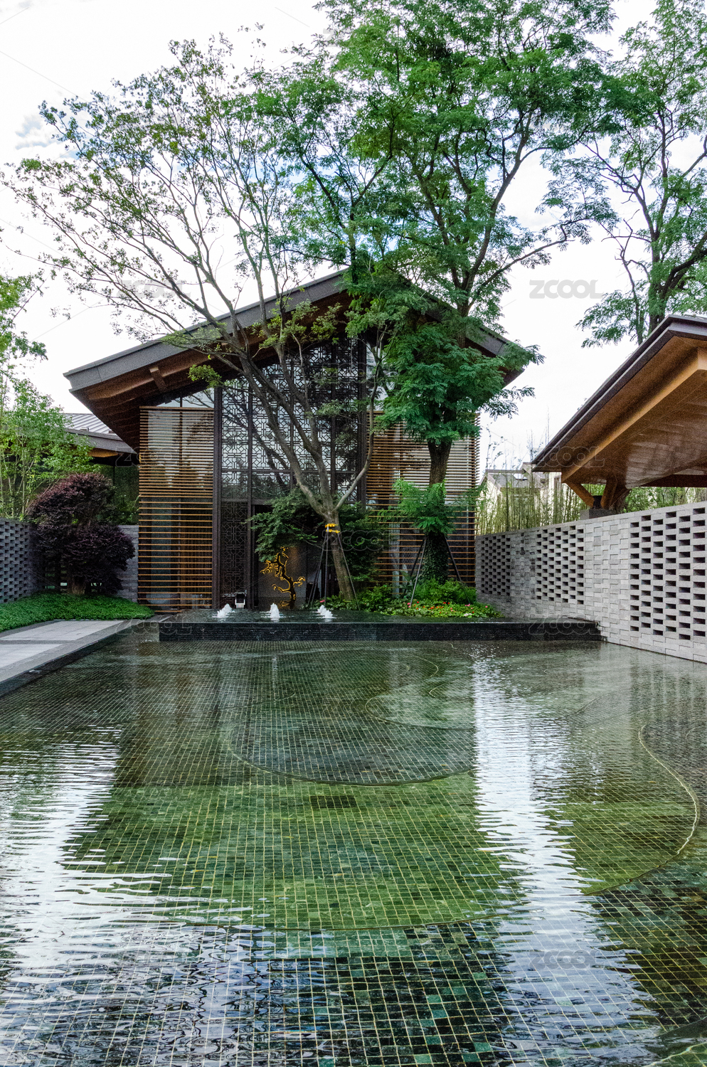 海南屯昌天湖半岛会所大道丑鸭喷水池