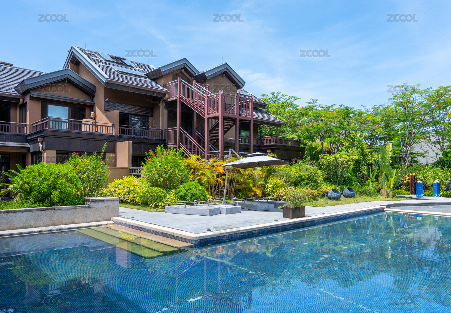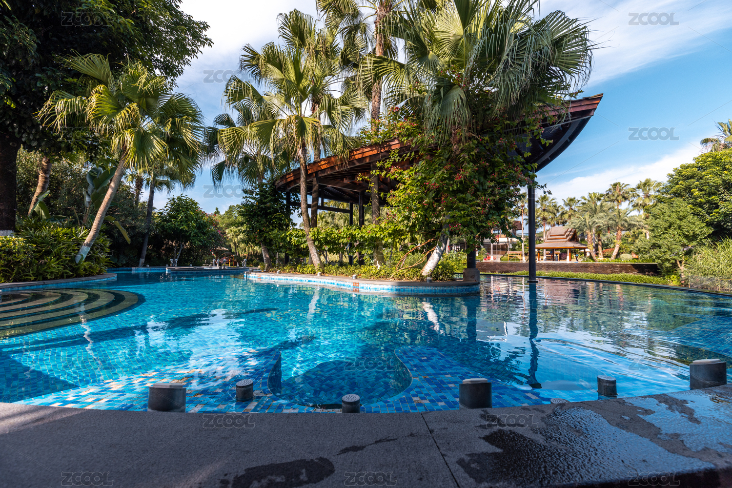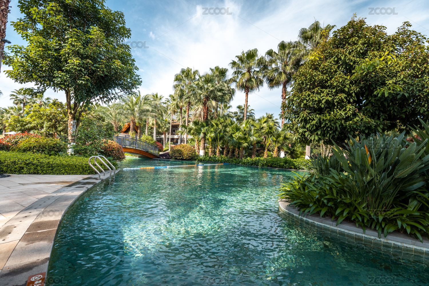 中国三亚蓝天白云海棠湾海边度假酒店海滩