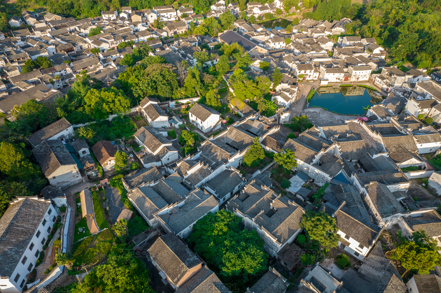 中国浙江省金华兰溪市诸葛八卦村航拍