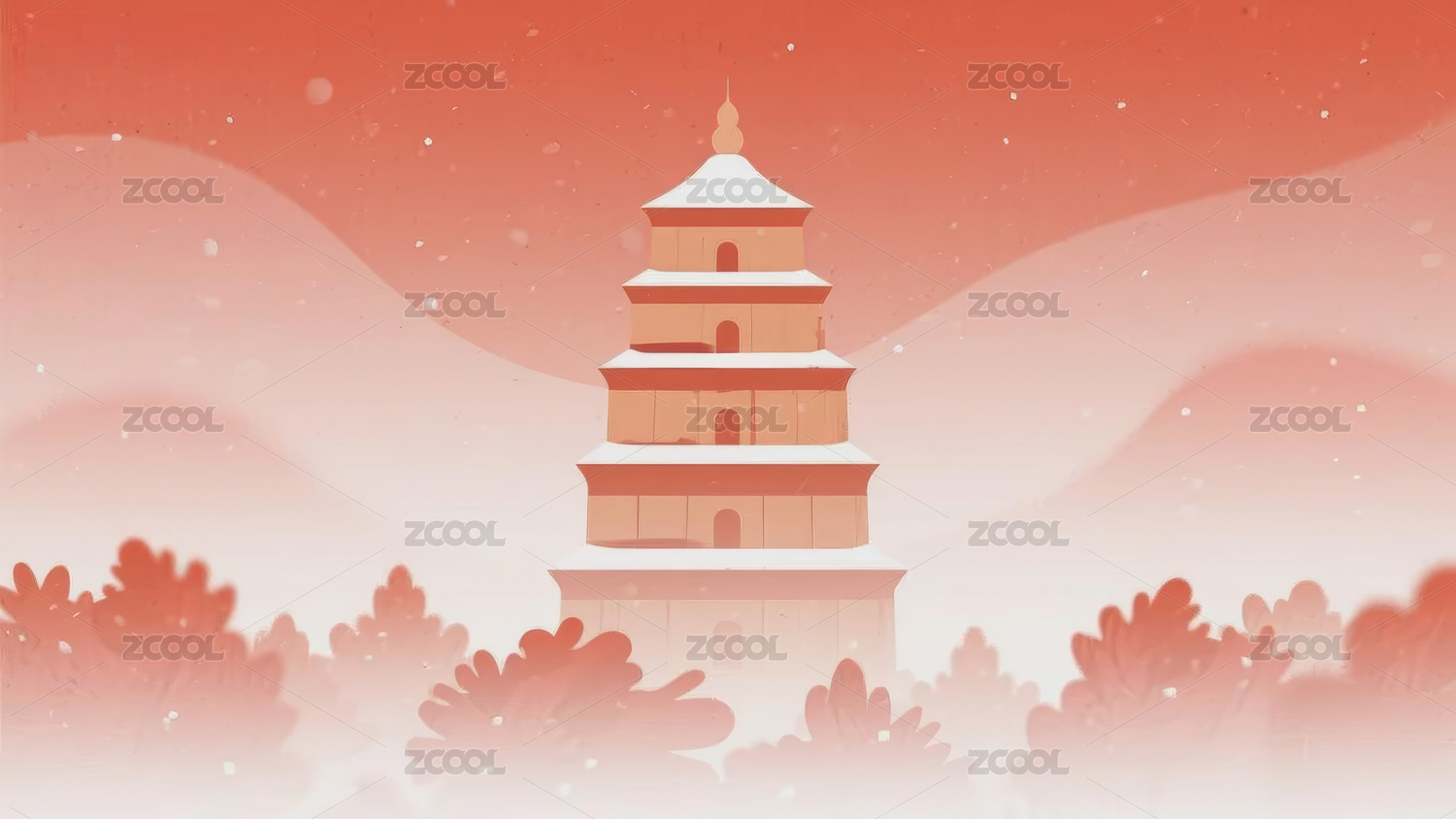 冬季山水古塔插画