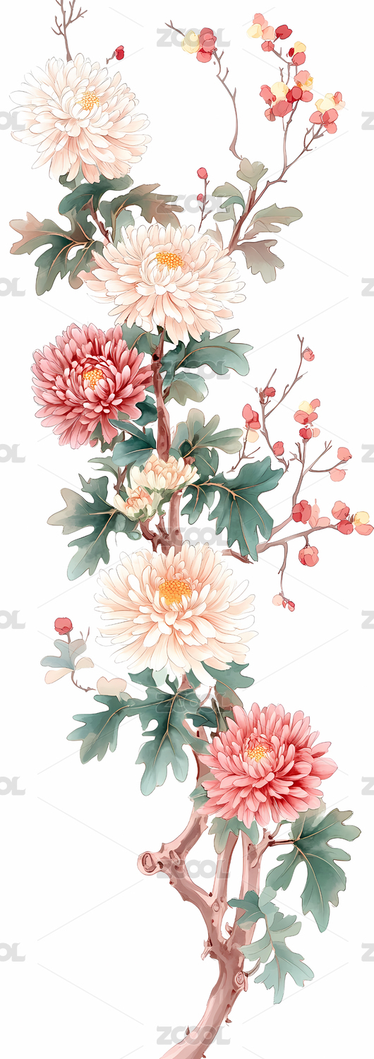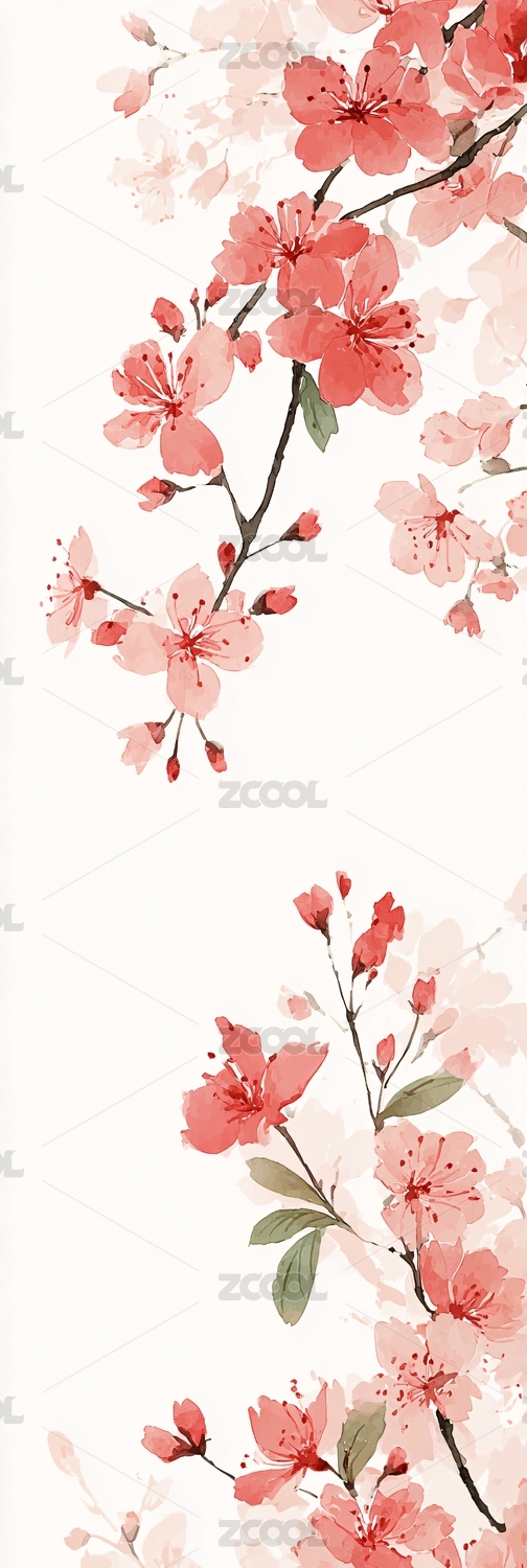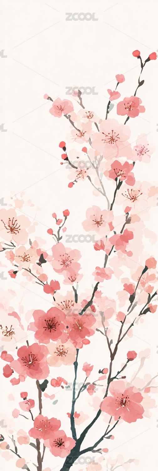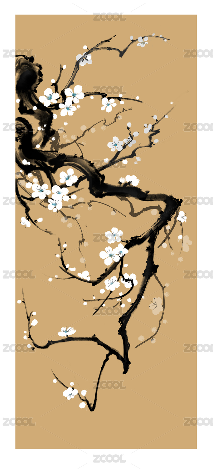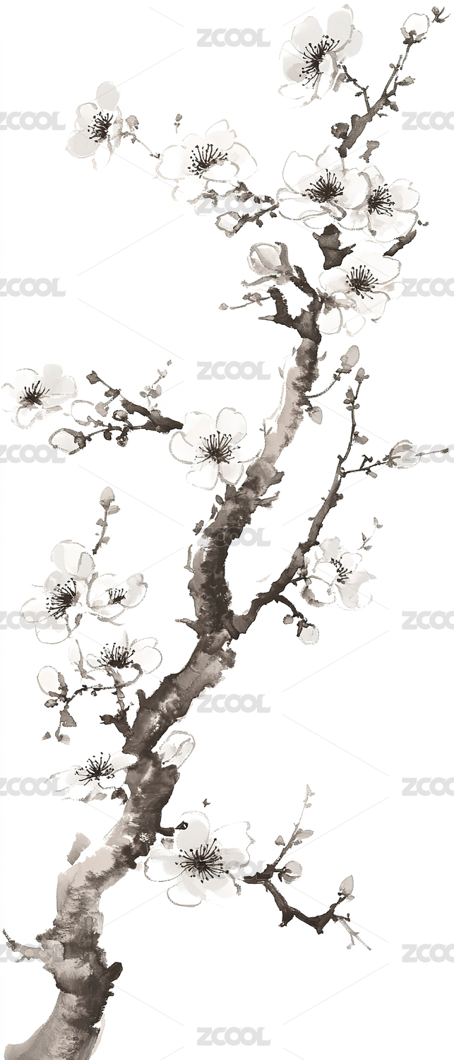 插画,水墨,中国画,新中式,竖幅,装饰画,书签,花鸟画,自然,户外