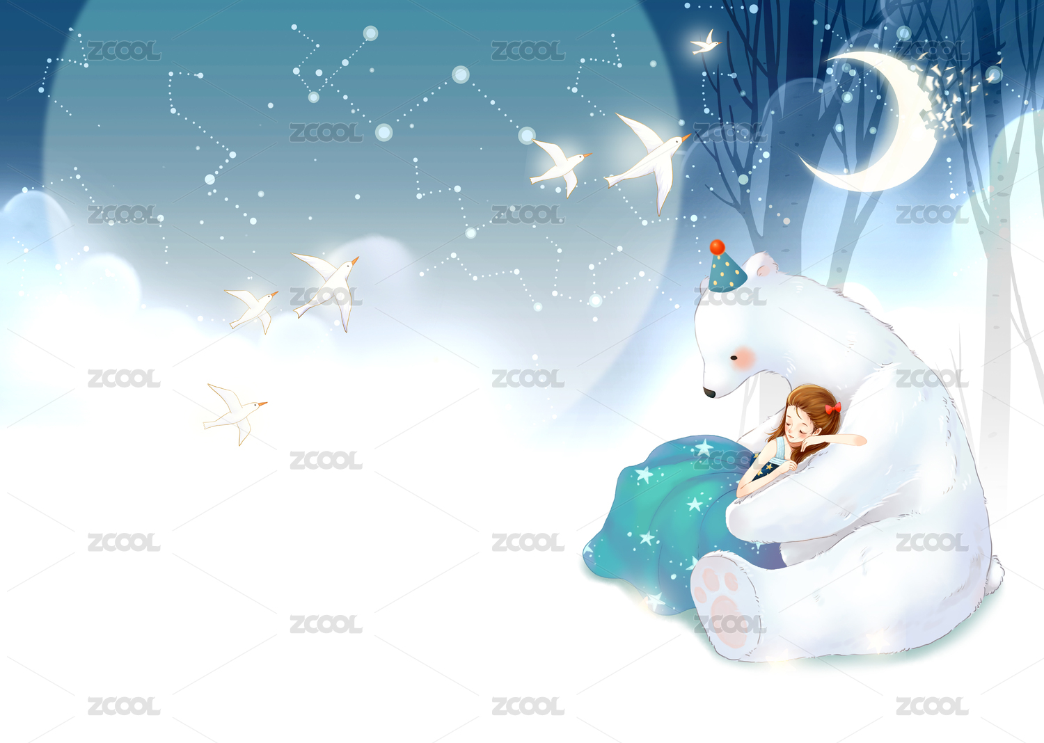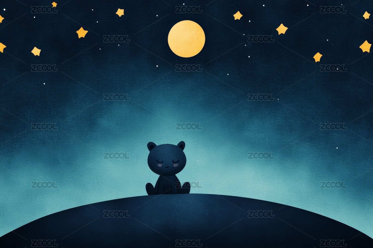 一只孤独的小熊仰望满是星空的夜晚——插画