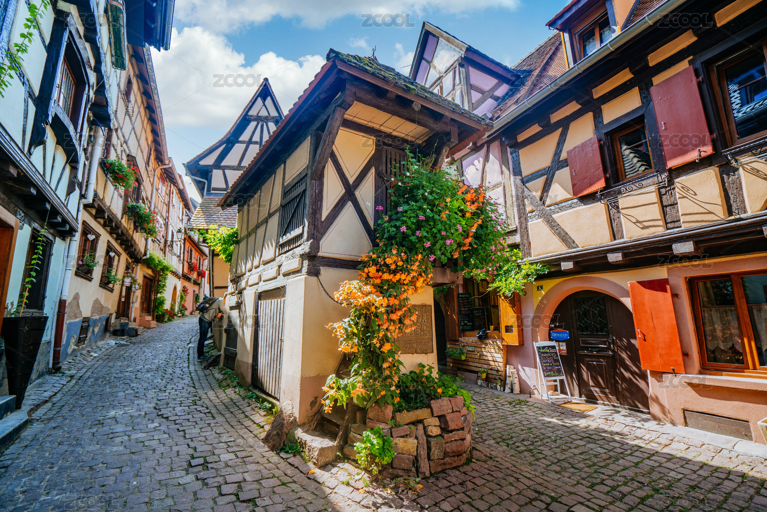 欧洲法国阿尔萨斯鲜花小镇埃吉桑街景