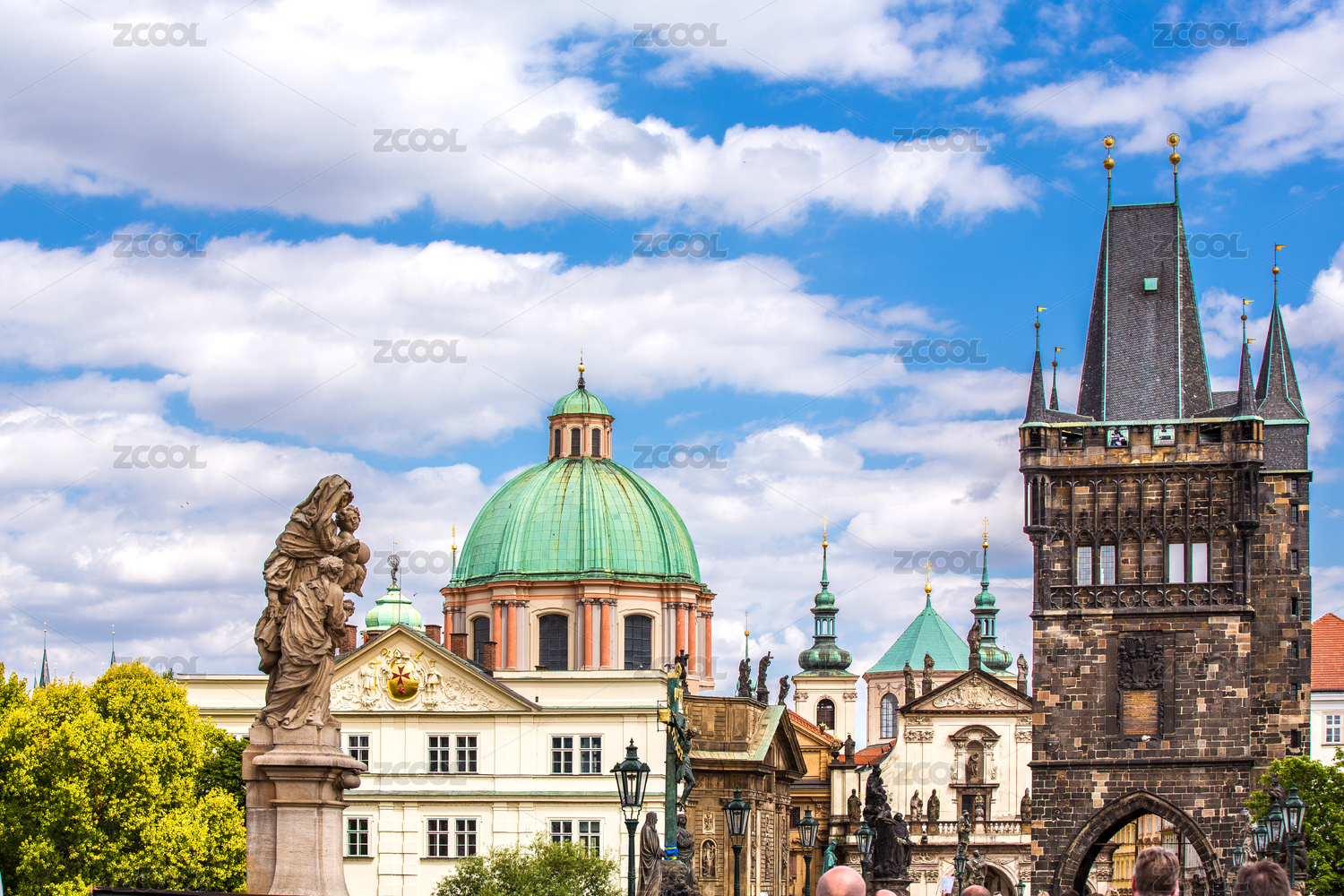 捷克首都布拉格市圣维塔大教堂塔楼外观