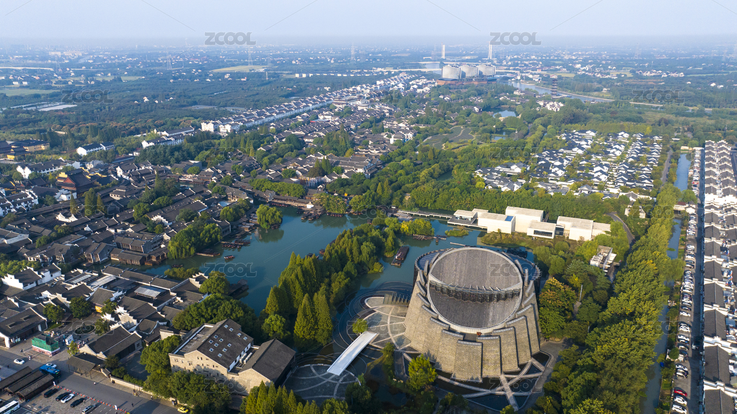 浙江宁波桐乡乌镇西栅古镇江南水乡航拍