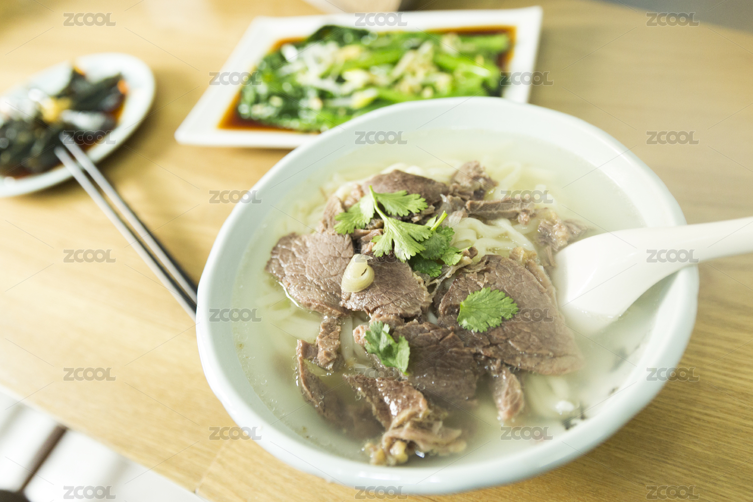 中国山东静物美食红汤牛肉面