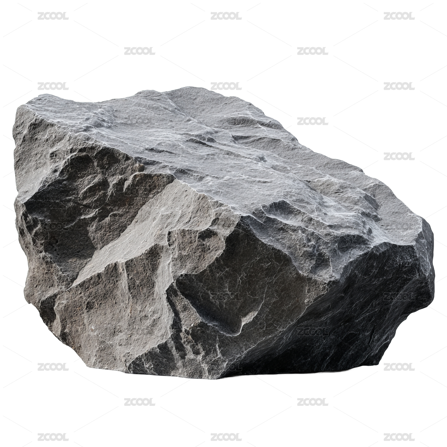 孤立展示的大型灰色粗糙岩石