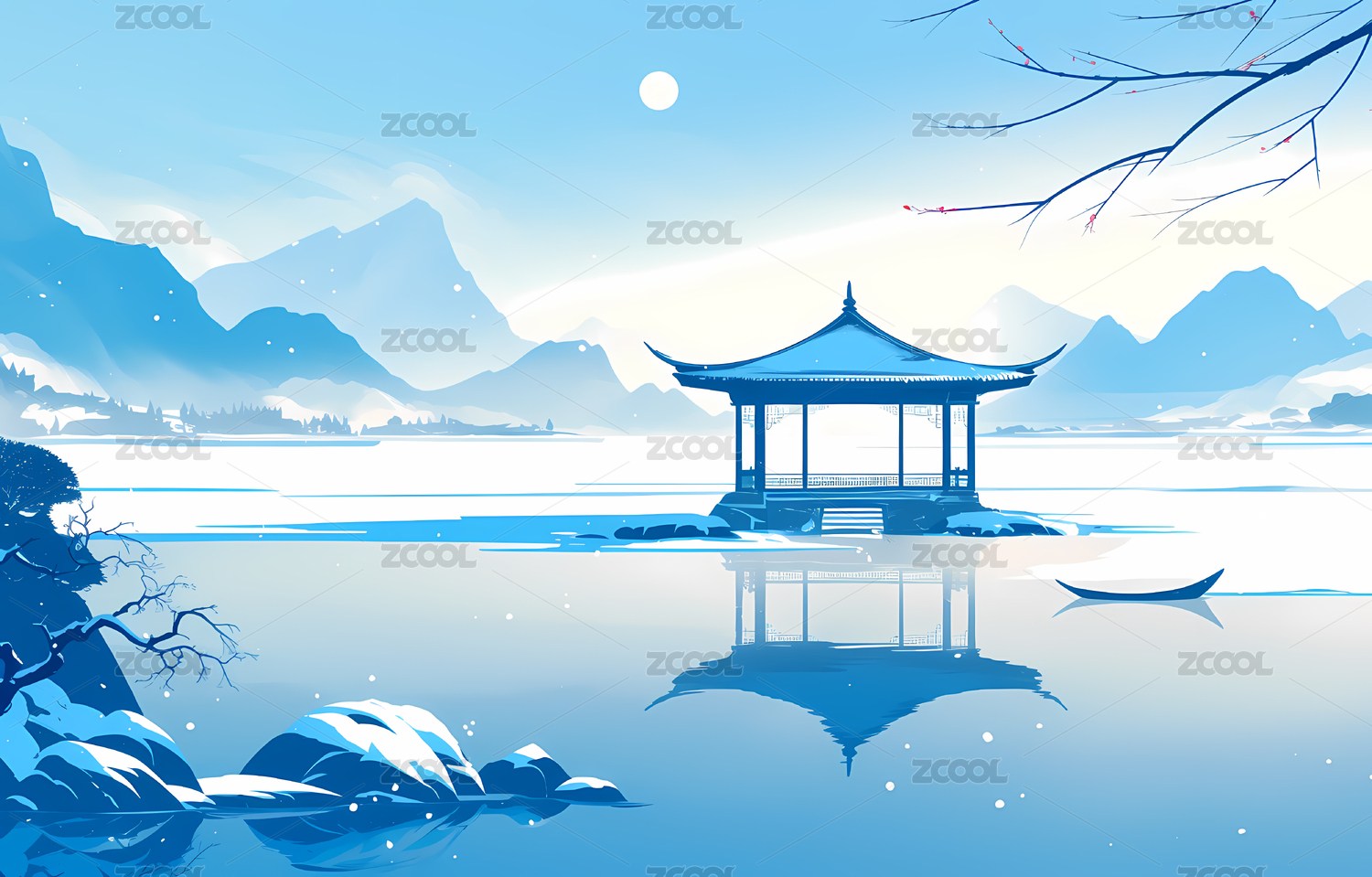 冬日雪景下的传统建筑,宁静祥和的东方意境