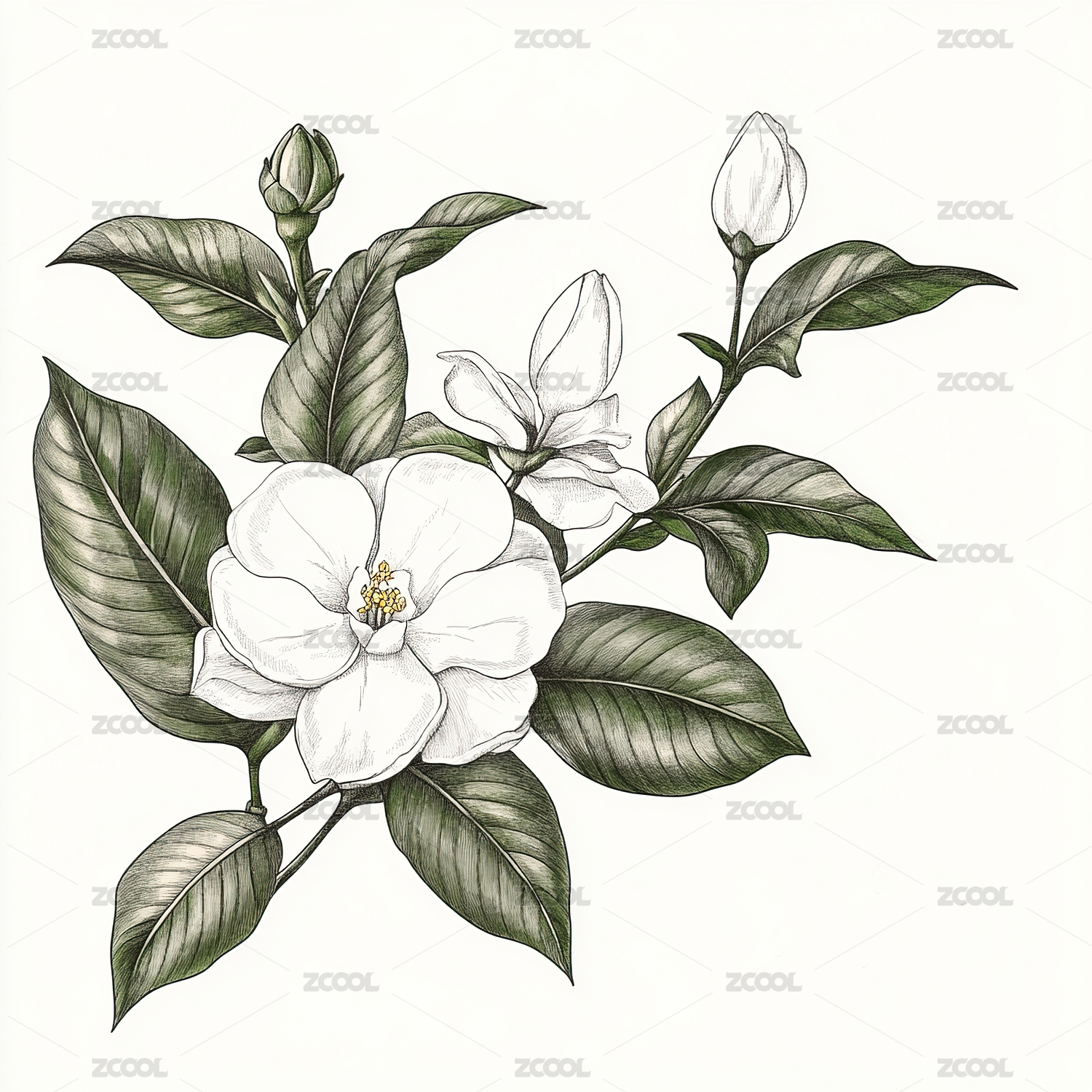 茉莉花栀子花植物花卉装饰插画