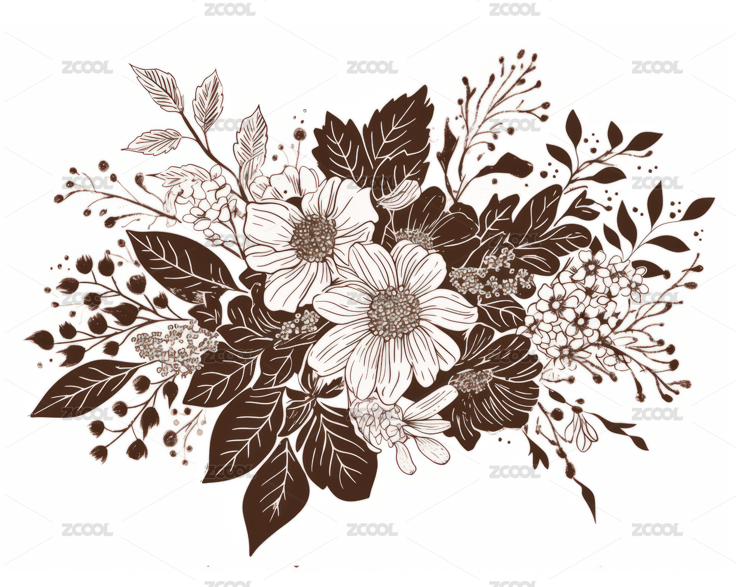 木刻版画线描花束