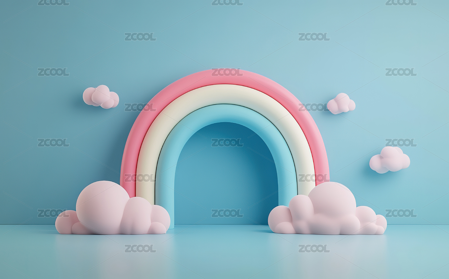 3D卡通彩虹拱门和云朵