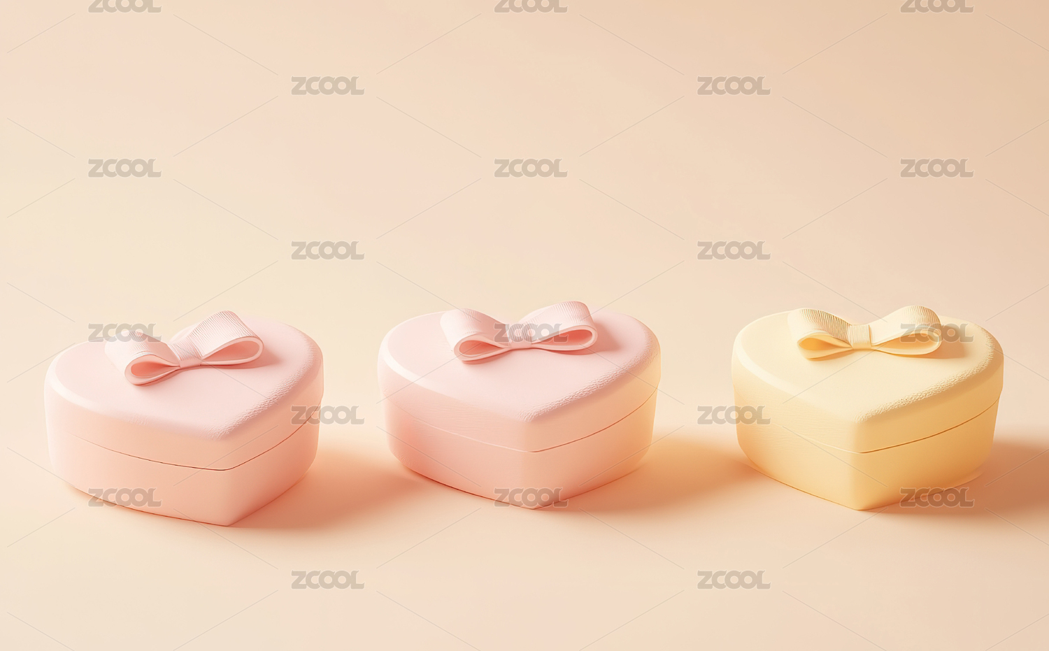 3D渲染的渐变粉色紫色爱心礼盒情人节促销