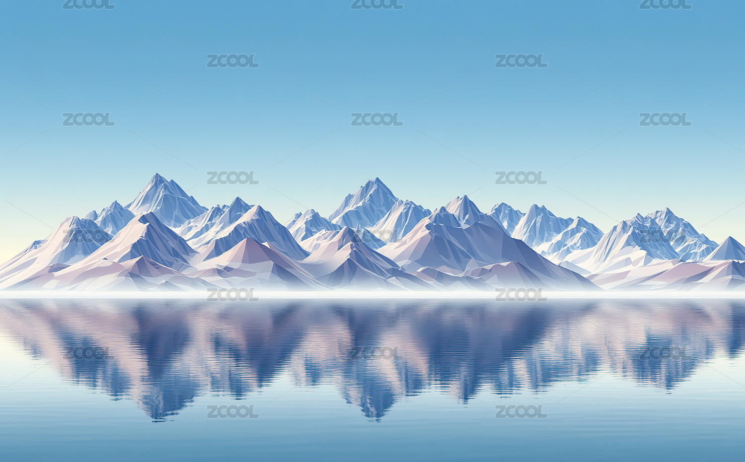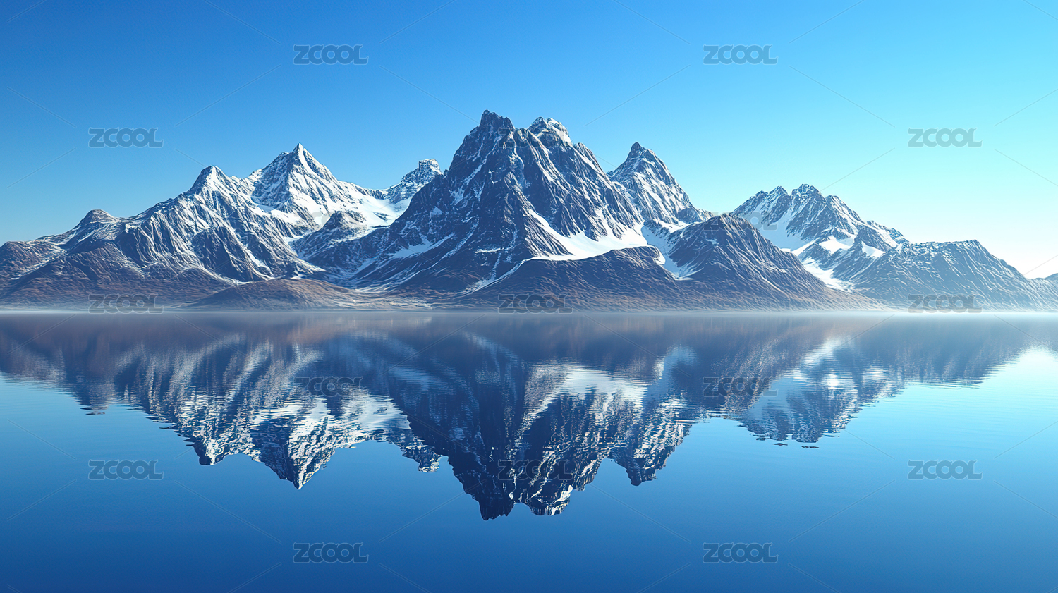 蓝色雪山倒影背景