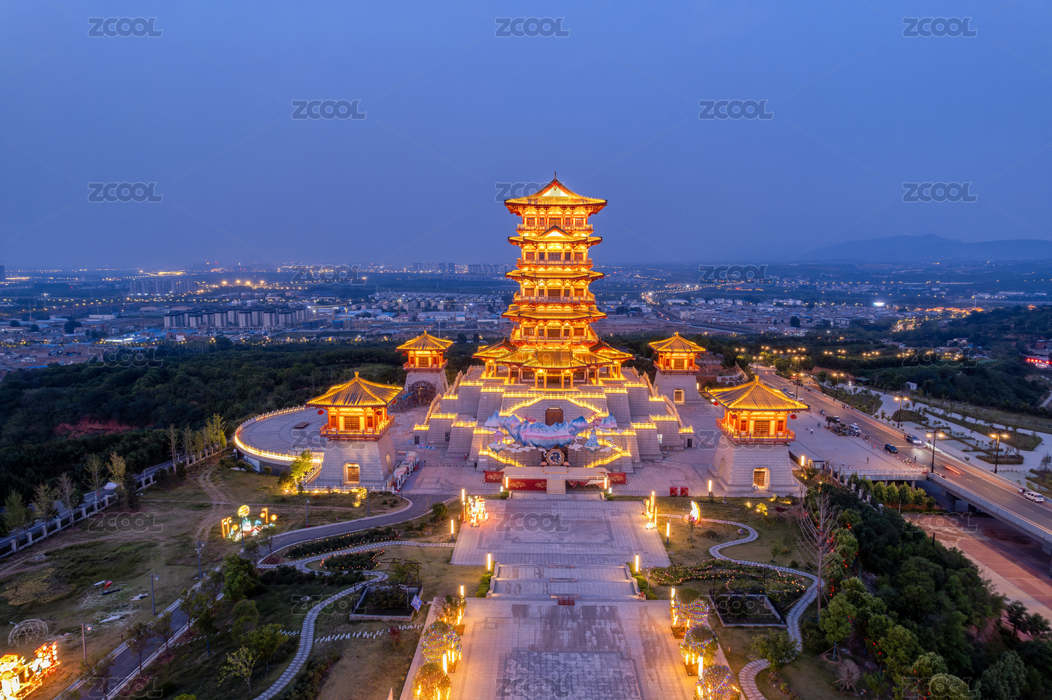河南,洛阳,城市地标,博物馆,牡丹博物馆,航拍,牡丹阁,塔,洛阳博物馆,建筑外部