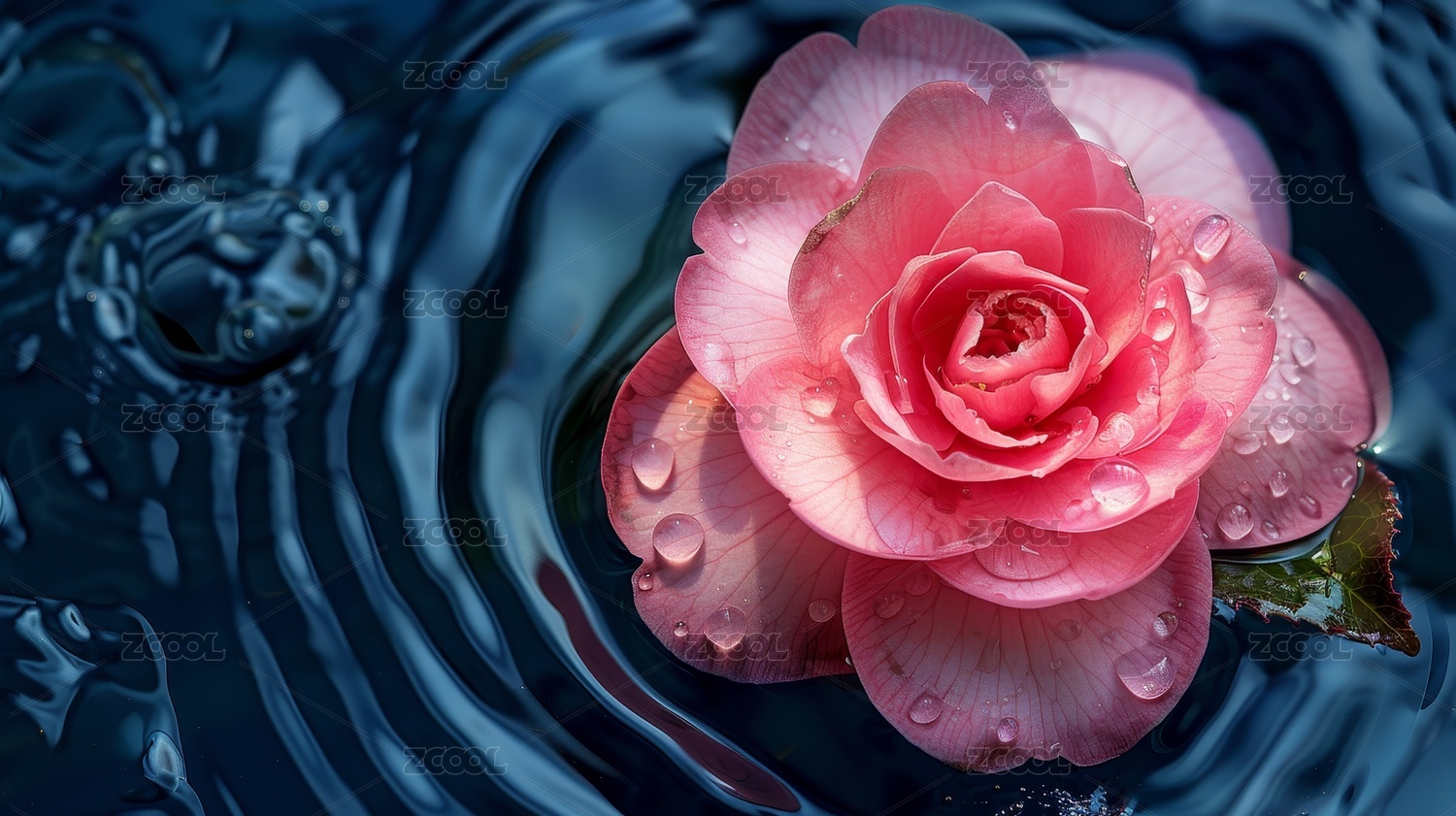 带水珠的山茶花和水面倒影美容护肤海报元素
