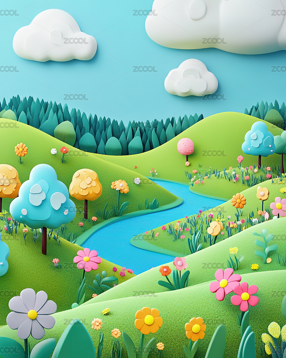 卡通风格的绿色景观