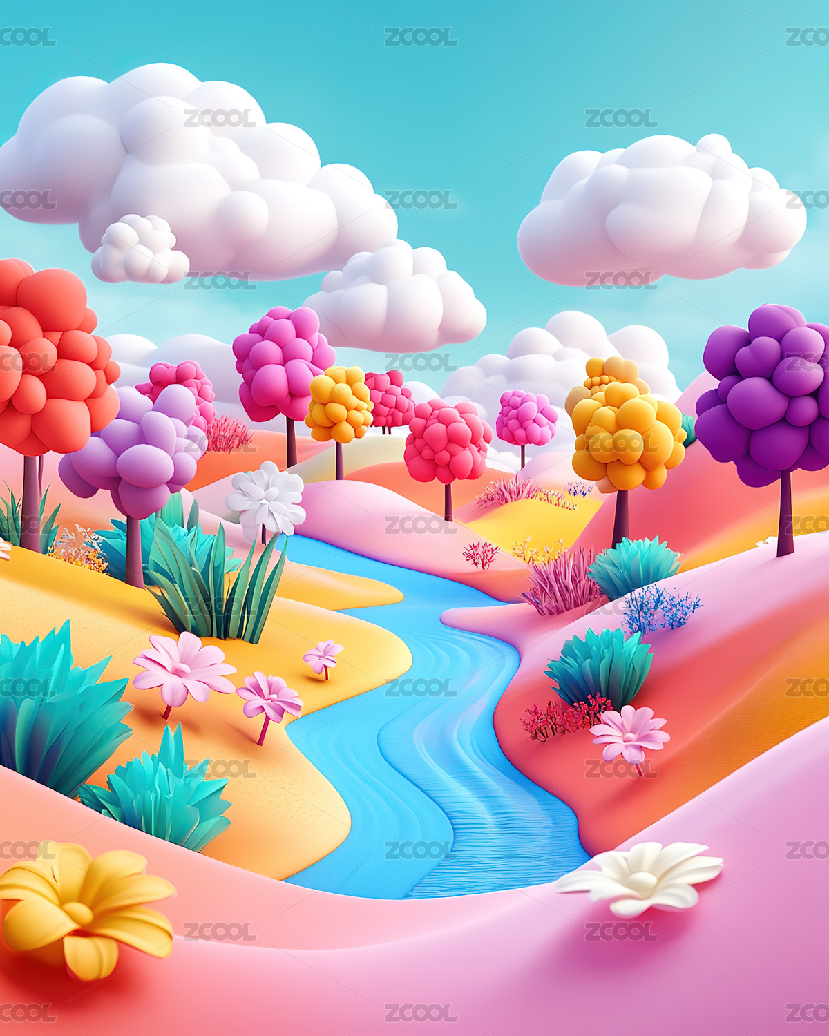 卡通风格的自然景观